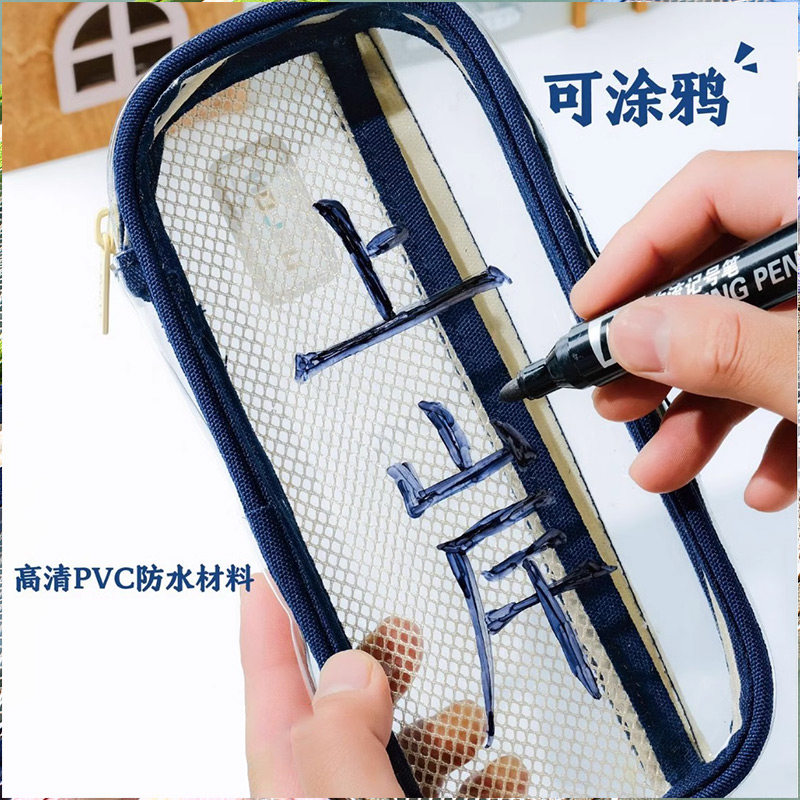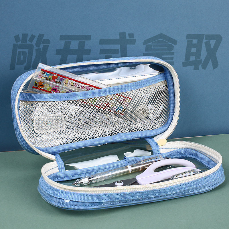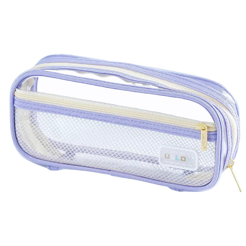 USLON尤斯隆透明笔袋大容量双拉链有隔层合理分类学生文具收纳袋