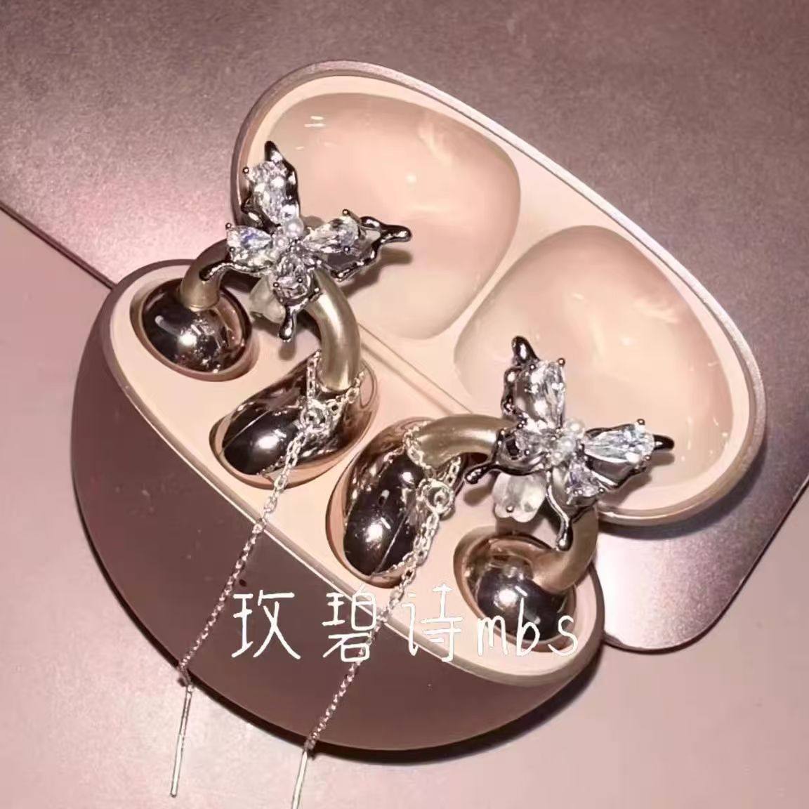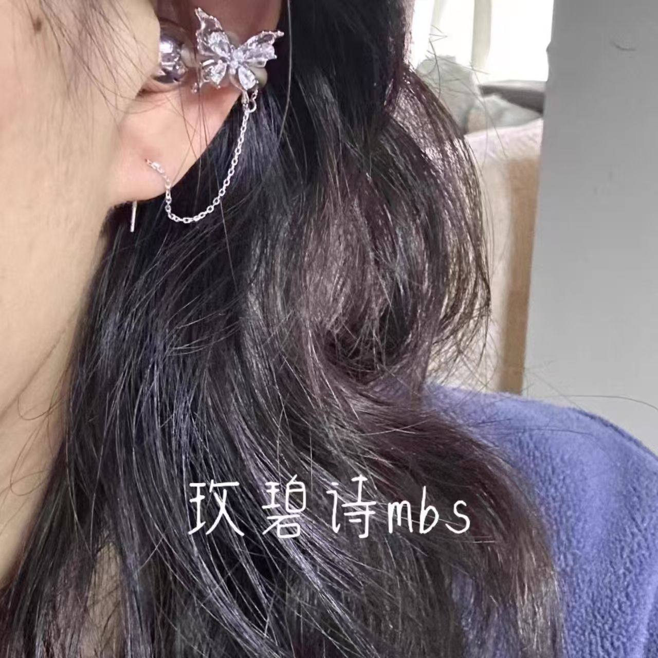 满钻蝴蝶流苏耳机夹钻扣小众设计高级感卡扣耳骨夹耳夹