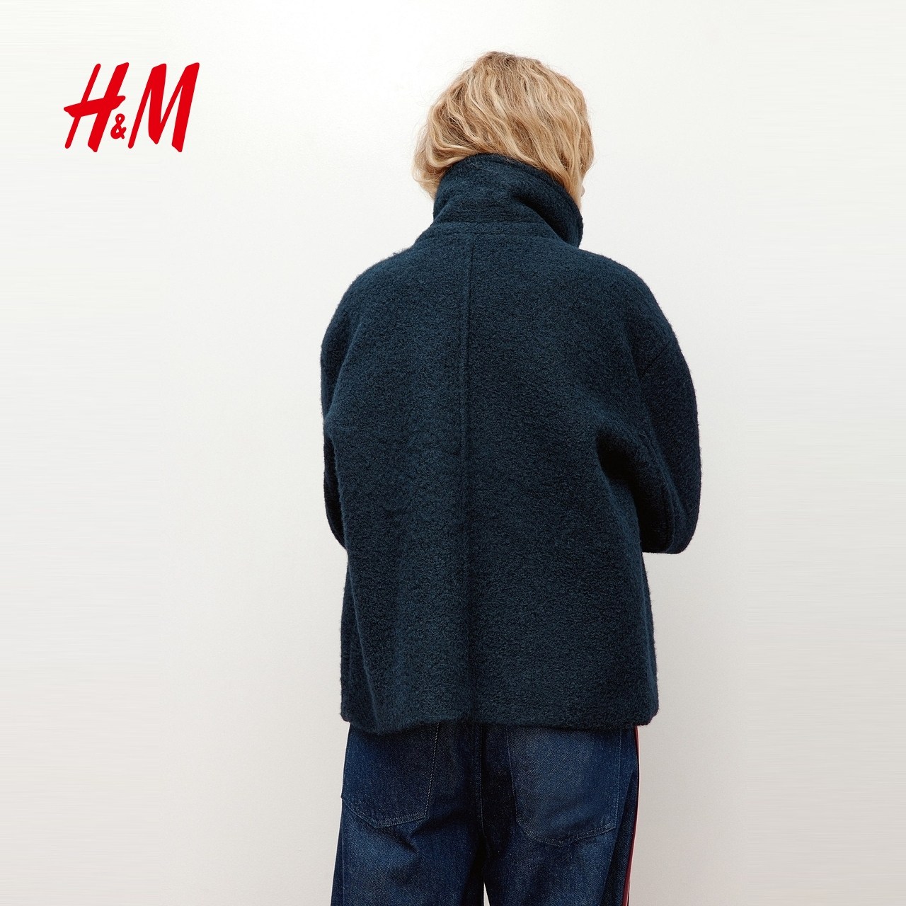 HM女装毛呢外套2025冬冬新款双排扣短款宽松翻领毛绒大衣1301400