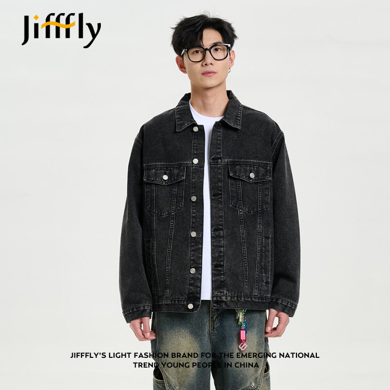 jifffly牛仔外套男2025秋冬新款美式高街黑色水洗复古百搭夹克