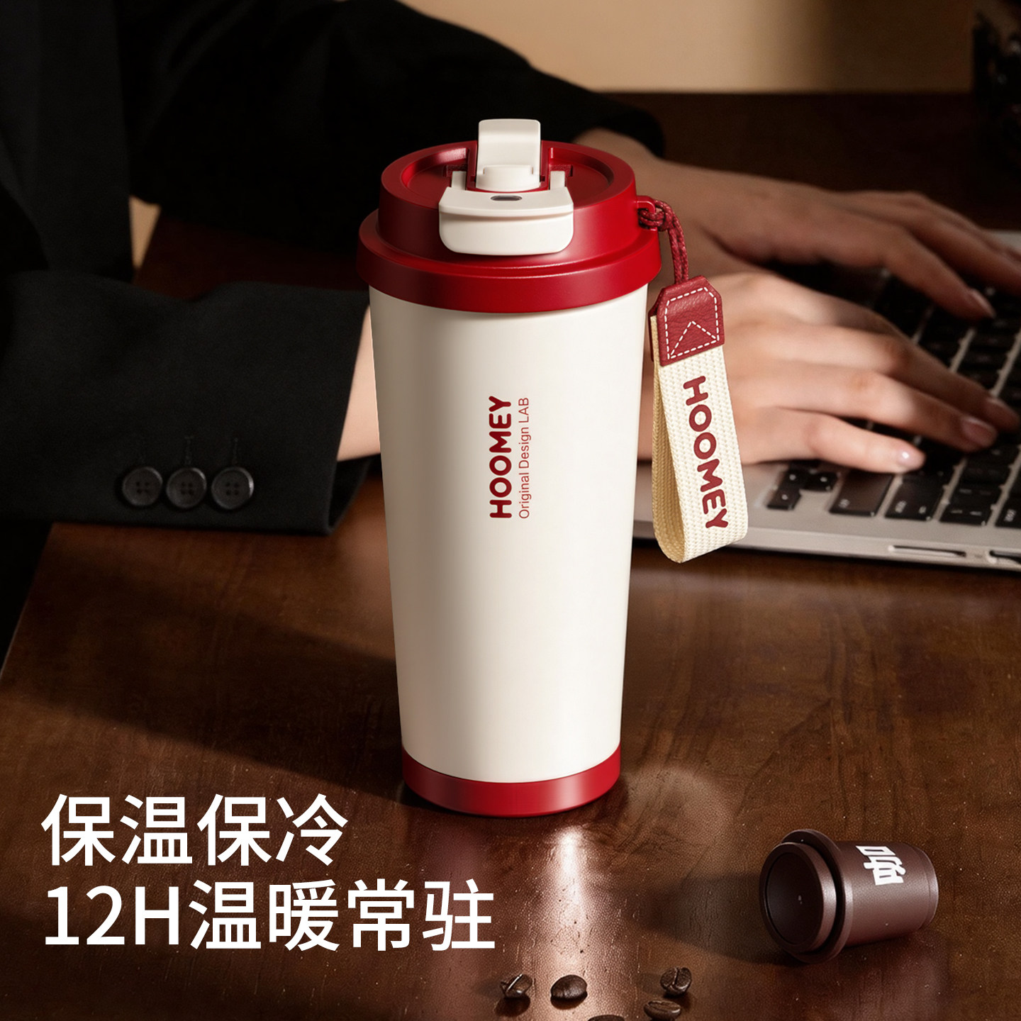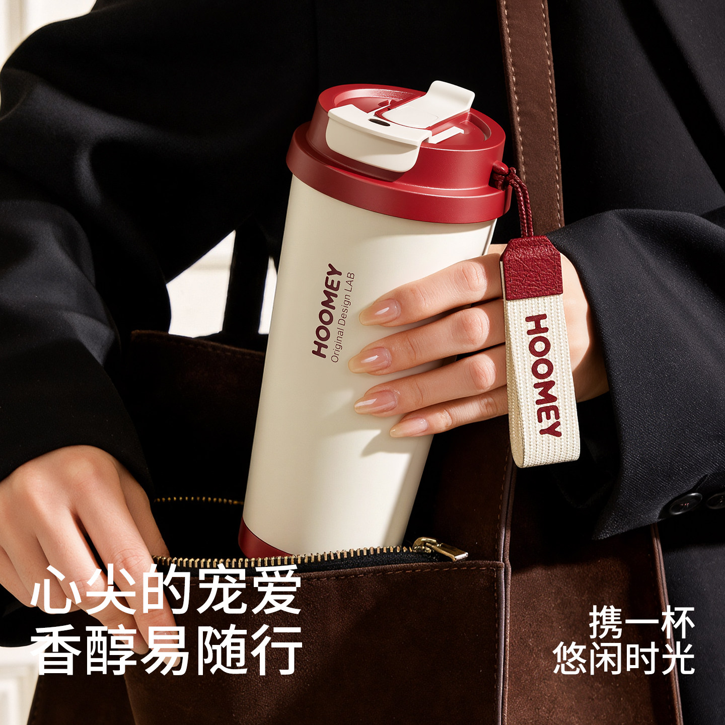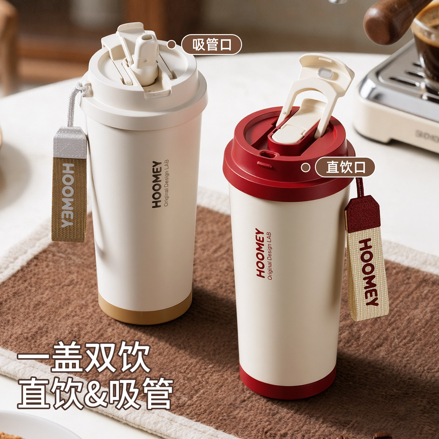 hoomey保温杯陶瓷内胆咖啡杯女生高颜值吸管水杯2026新款随行杯子