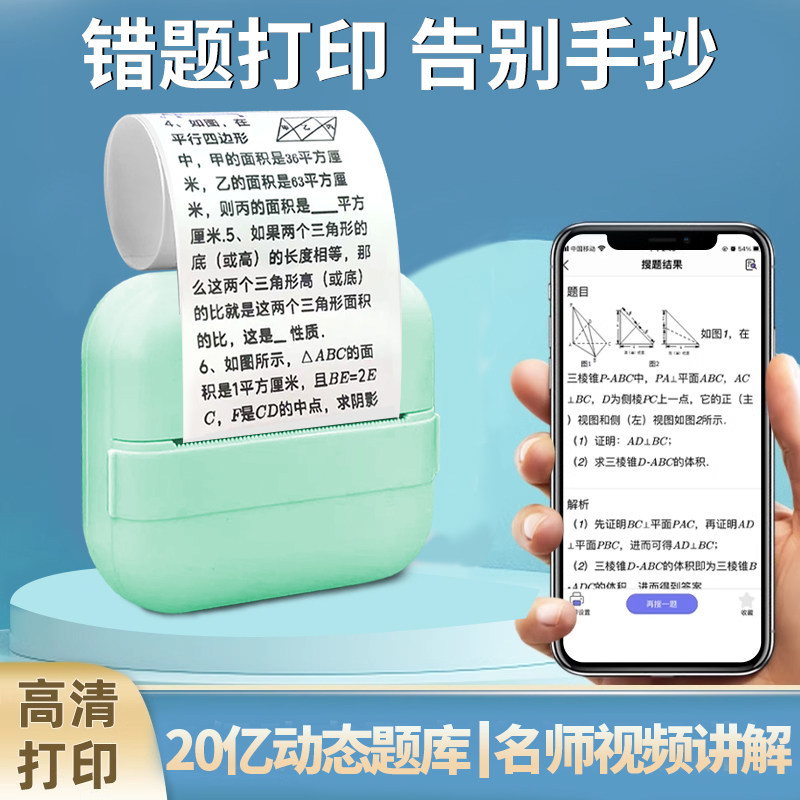 错题打印机便携式小学生初中生高中生作业错习题本集免抄题整理神器口袋便携迷你小型蓝牙热敏高清照片打印机