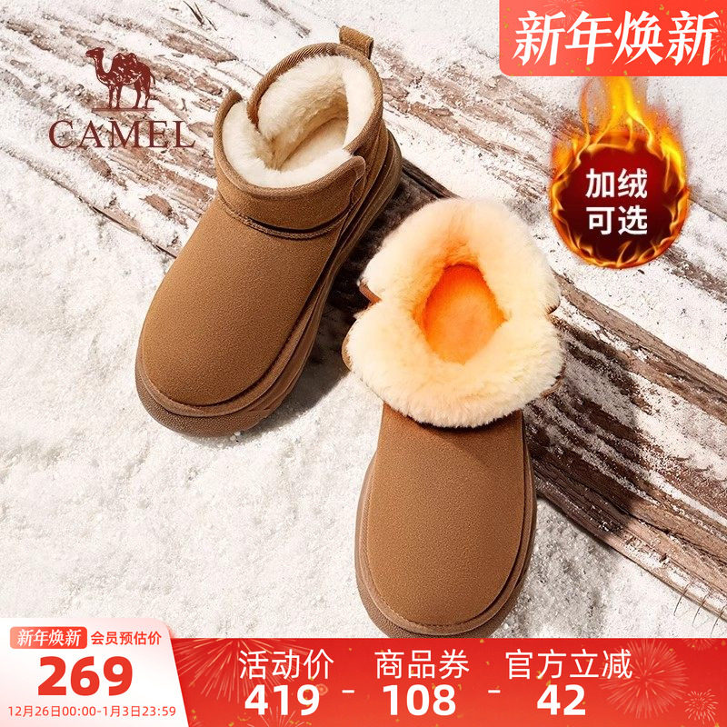 骆驼男鞋雪地靴2025冬季新款加厚加绒保暖皮毛一体高帮东北棉鞋男