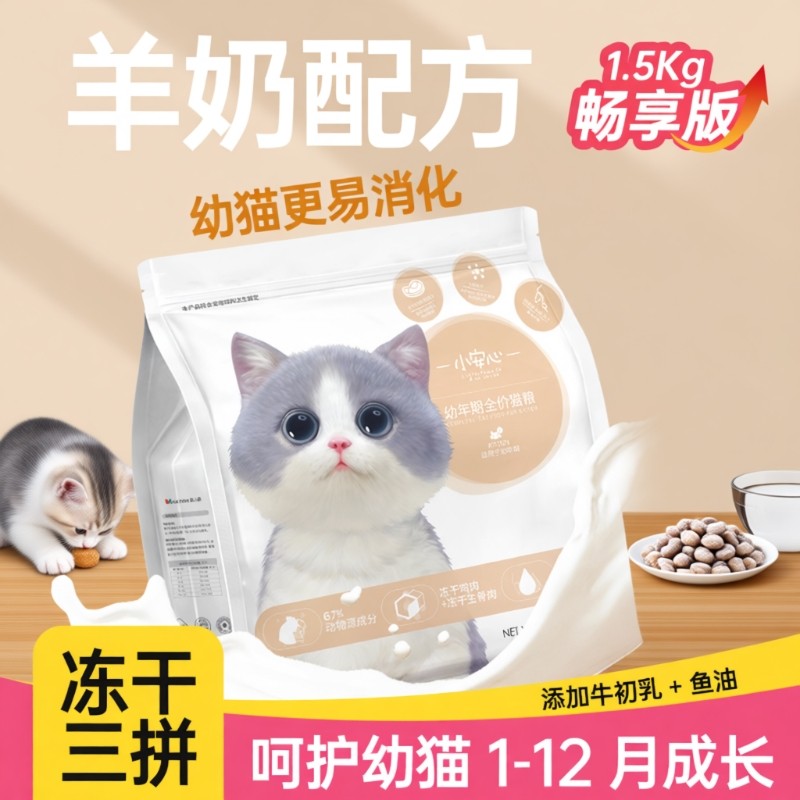小安心猫粮幼猫1到3月奶糕专用离乳期4到12月全价小奶猫官方正品