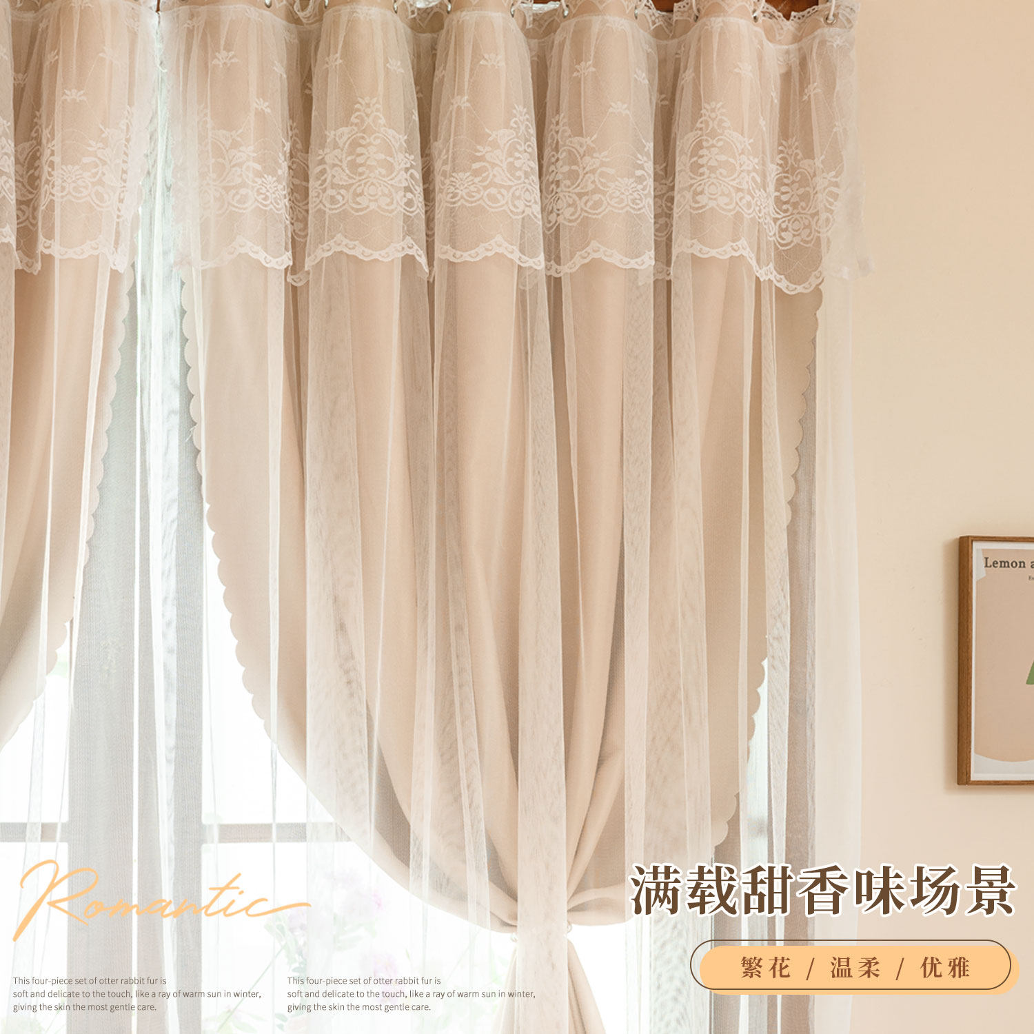 窗帘新款客厅阳台防晒遮光帘奶油风纱帘免打孔安装伸缩杆魔术粘贴