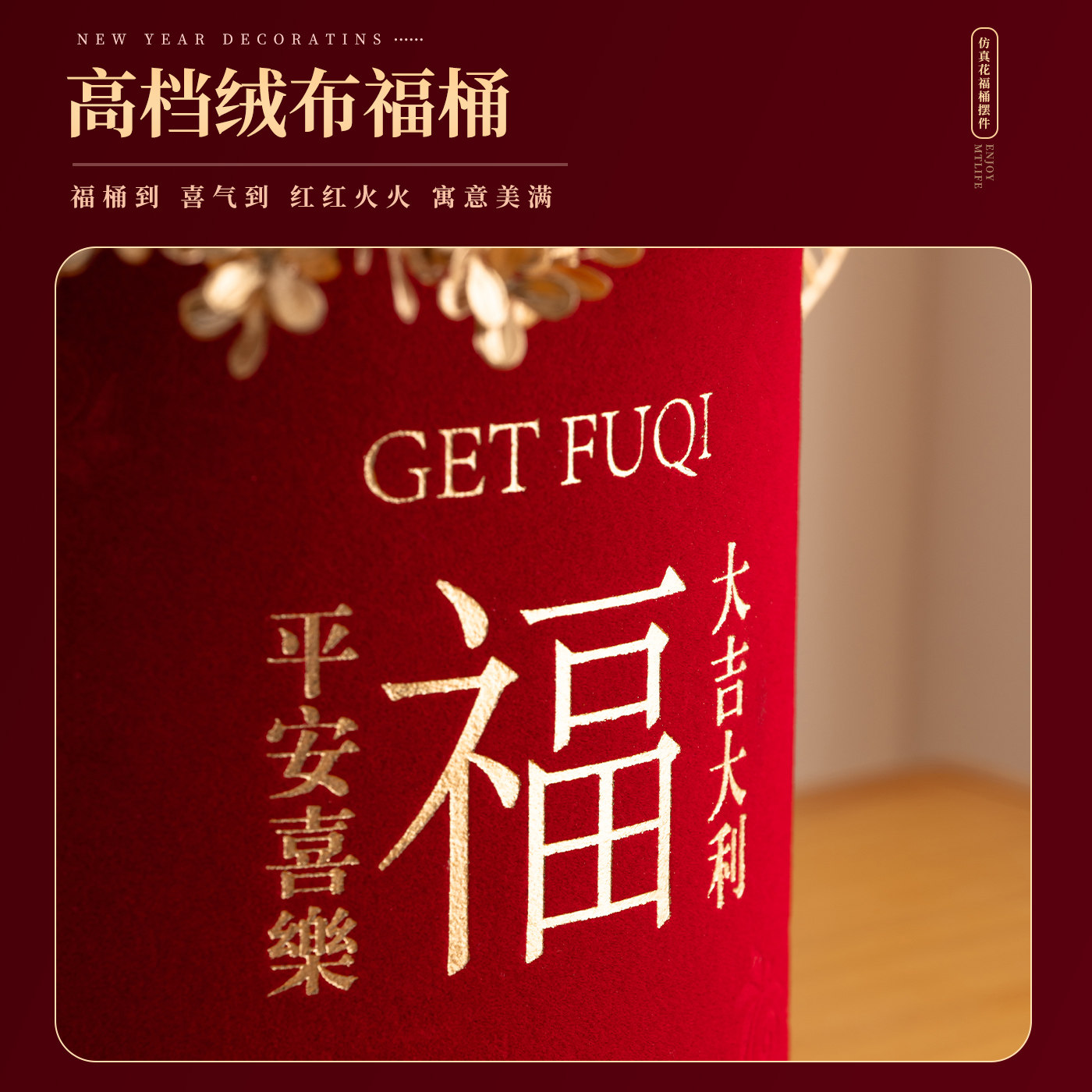 乔迁花束新居发财果福桶结婚客厅装饰摆件仿真花新婚礼物布置订婚