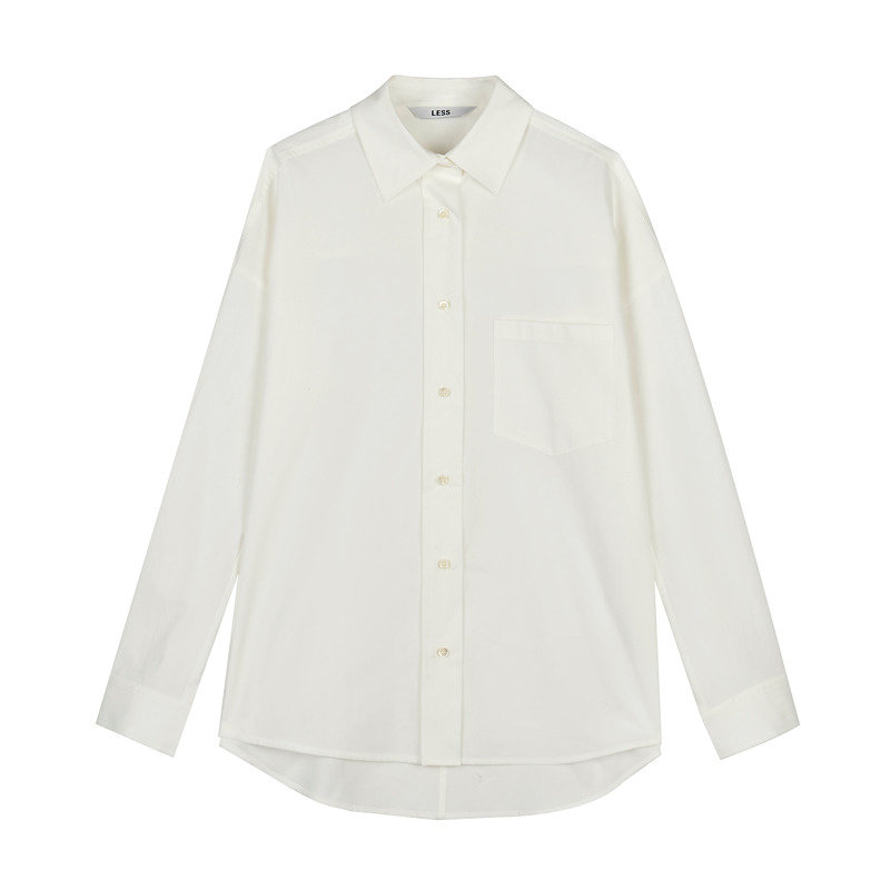 LESS春季纯色棉质休闲宽松经典简约舒适白色衬衫女2O1214050