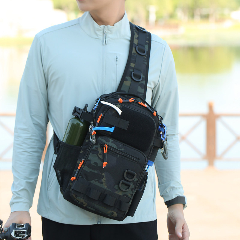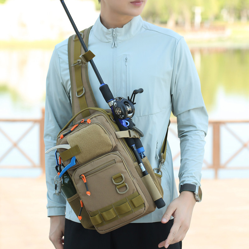 25新款路亚包斜挎多功能胸包钓鱼渔具弹弓专用谷麦竿收纳背包单肩