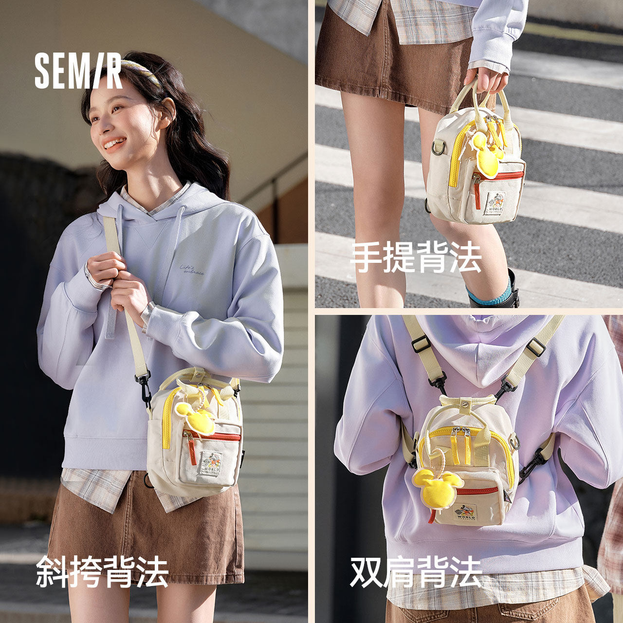 森马双肩包男迪士尼联名2025新款时尚撞色手提包情侣单肩斜挎包潮