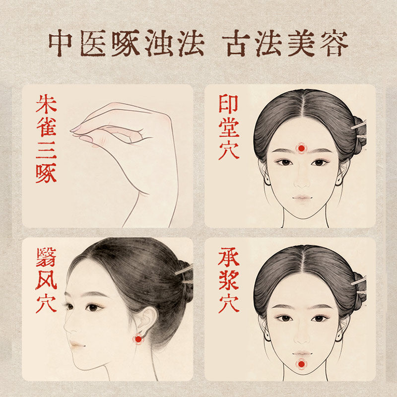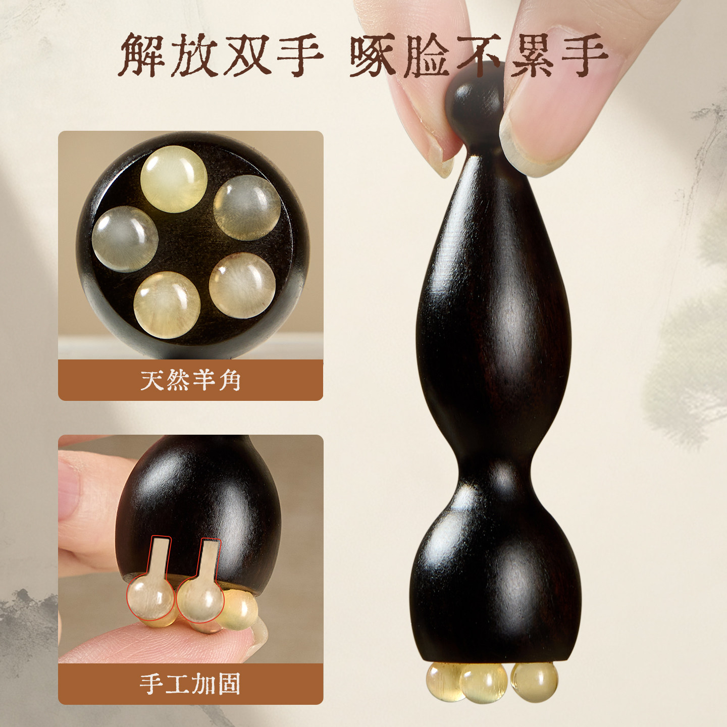 檀木朱雀三啄工具小莲蓬眼部按摩棒脸部点穴位面部美容拨筋棒羊角