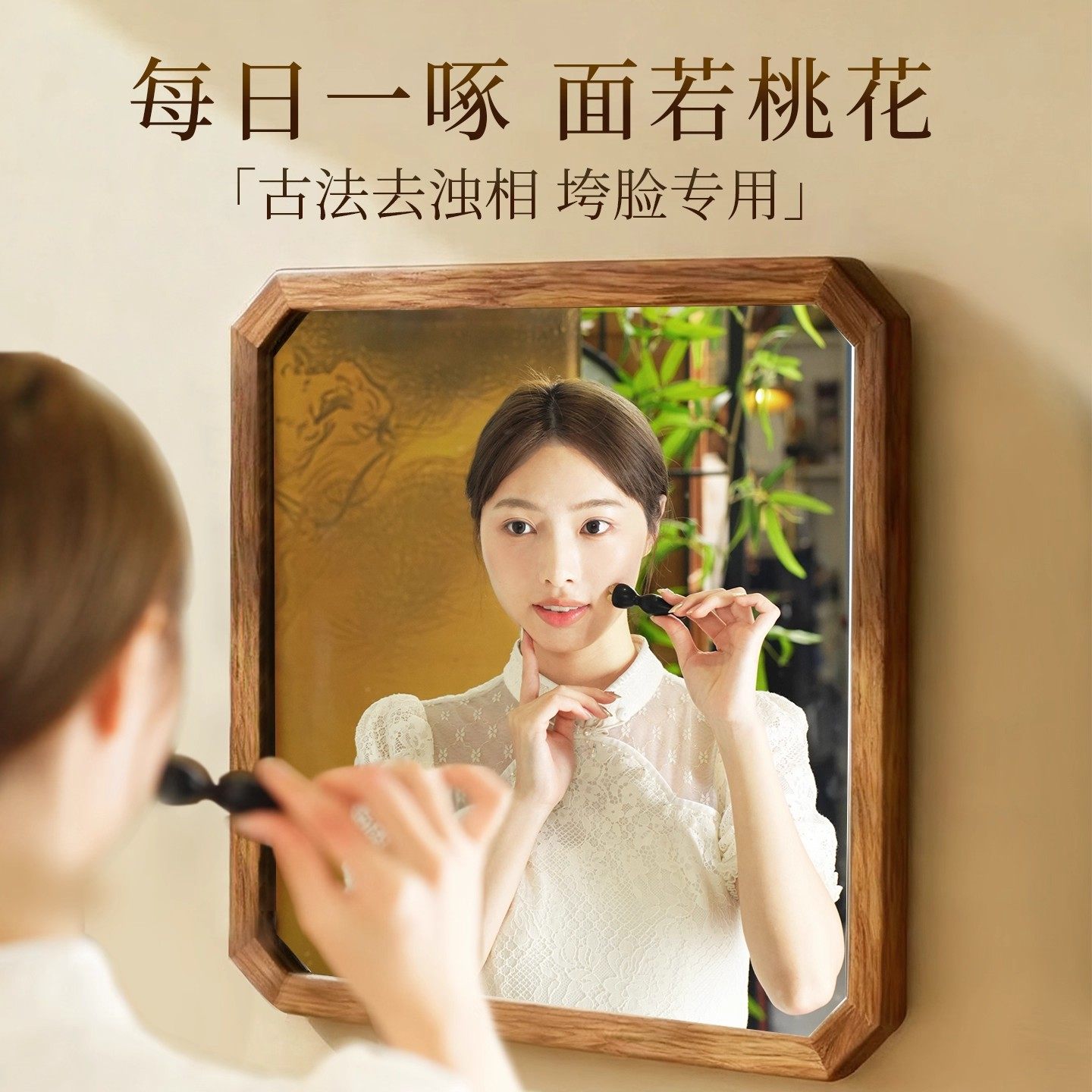 小莲蓬面部按摩器脸部美容黄铜眼部拨筋棒点穴护肤工具刮板实木