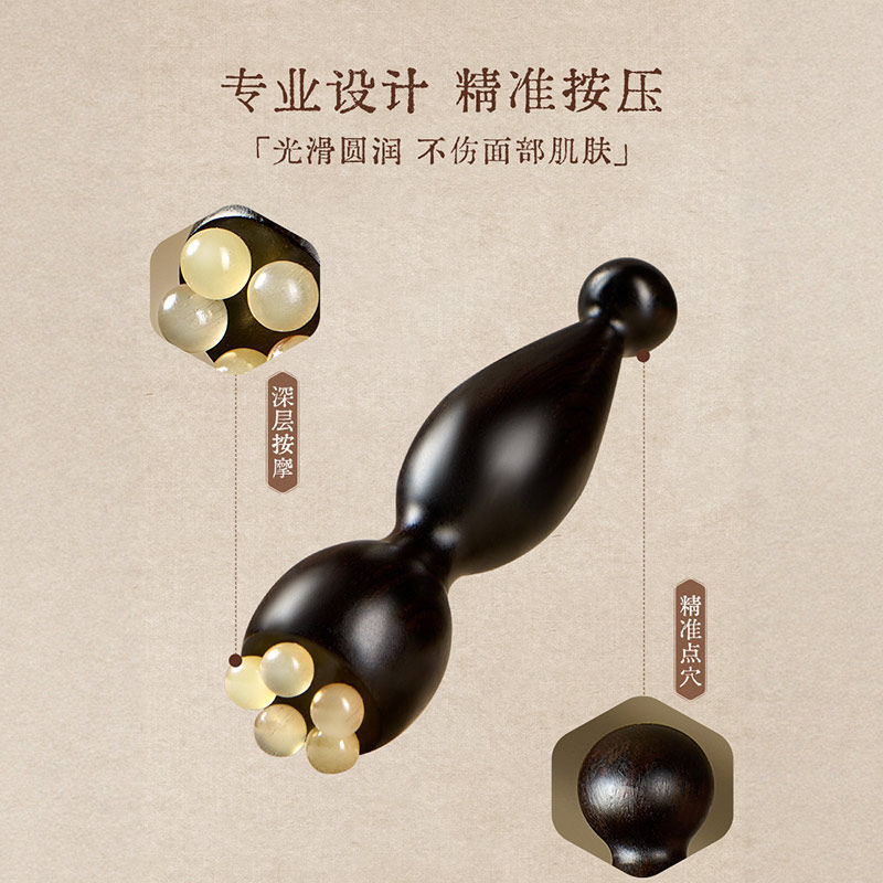 小莲蓬面部按摩器脸部美容镀黄铜刮眼部拨筋棒点穴护肤工具花梨木