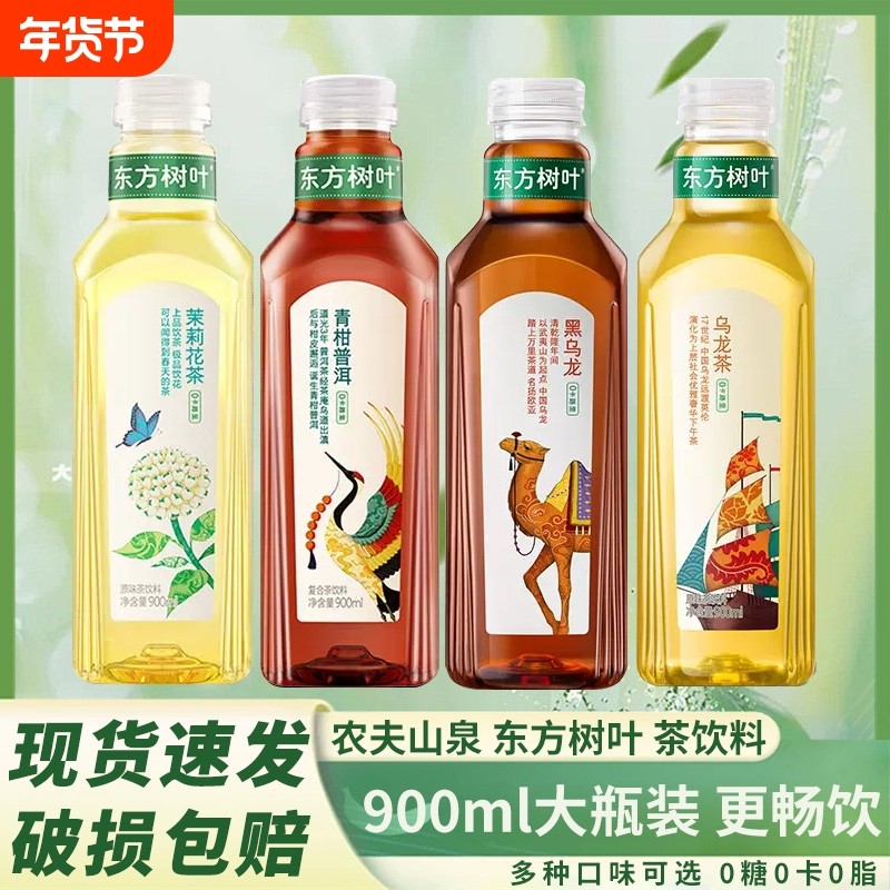 农夫山泉东方树叶900ml青柑普洱茉莉花茶无糖黑乌龙茶饮料绿茶