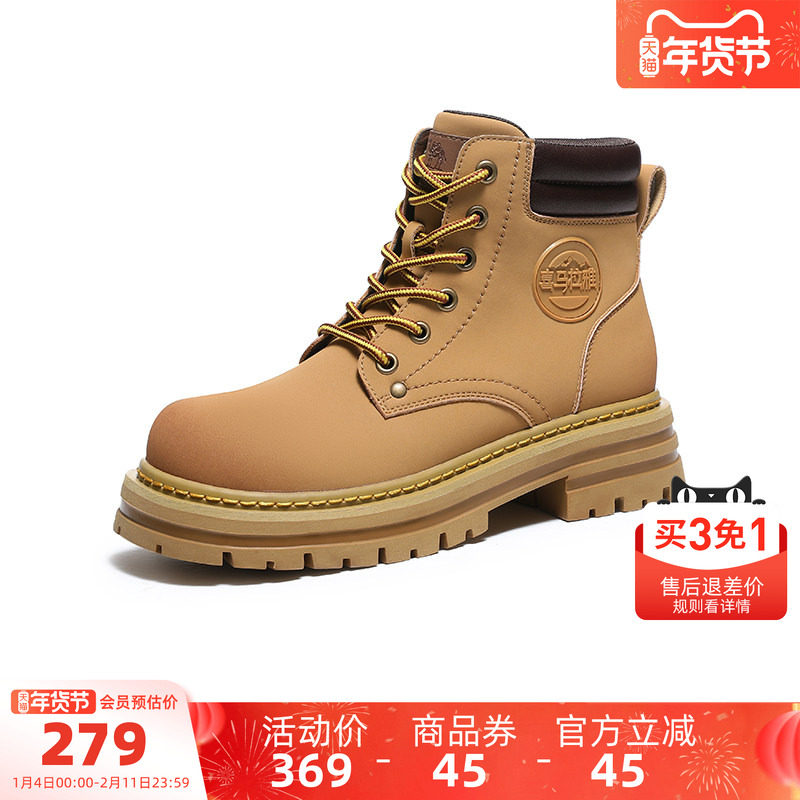 骆驼马丁靴女鞋2025秋季新款工装大黄靴英伦风厚底户外登山短靴子