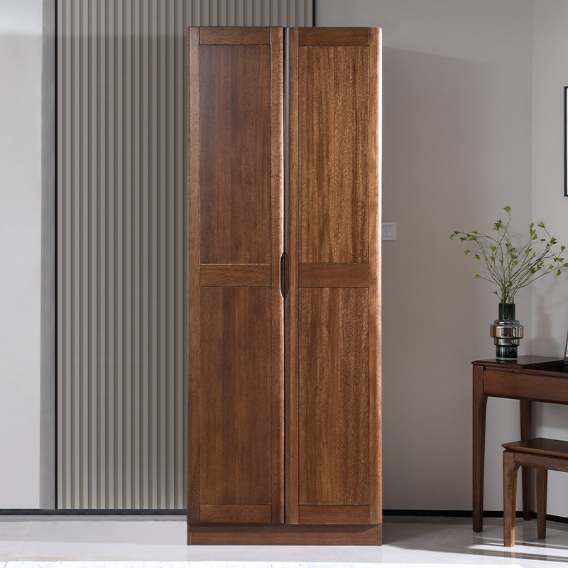 全实木两门衣柜家用卧室小户型胡桃木简约现代组装新款二门衣橱