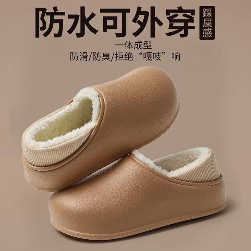 保暖棉拖鞋女士居家防水加绒勃肯毛毛拖鞋女秋冬季棉鞋防滑厚底