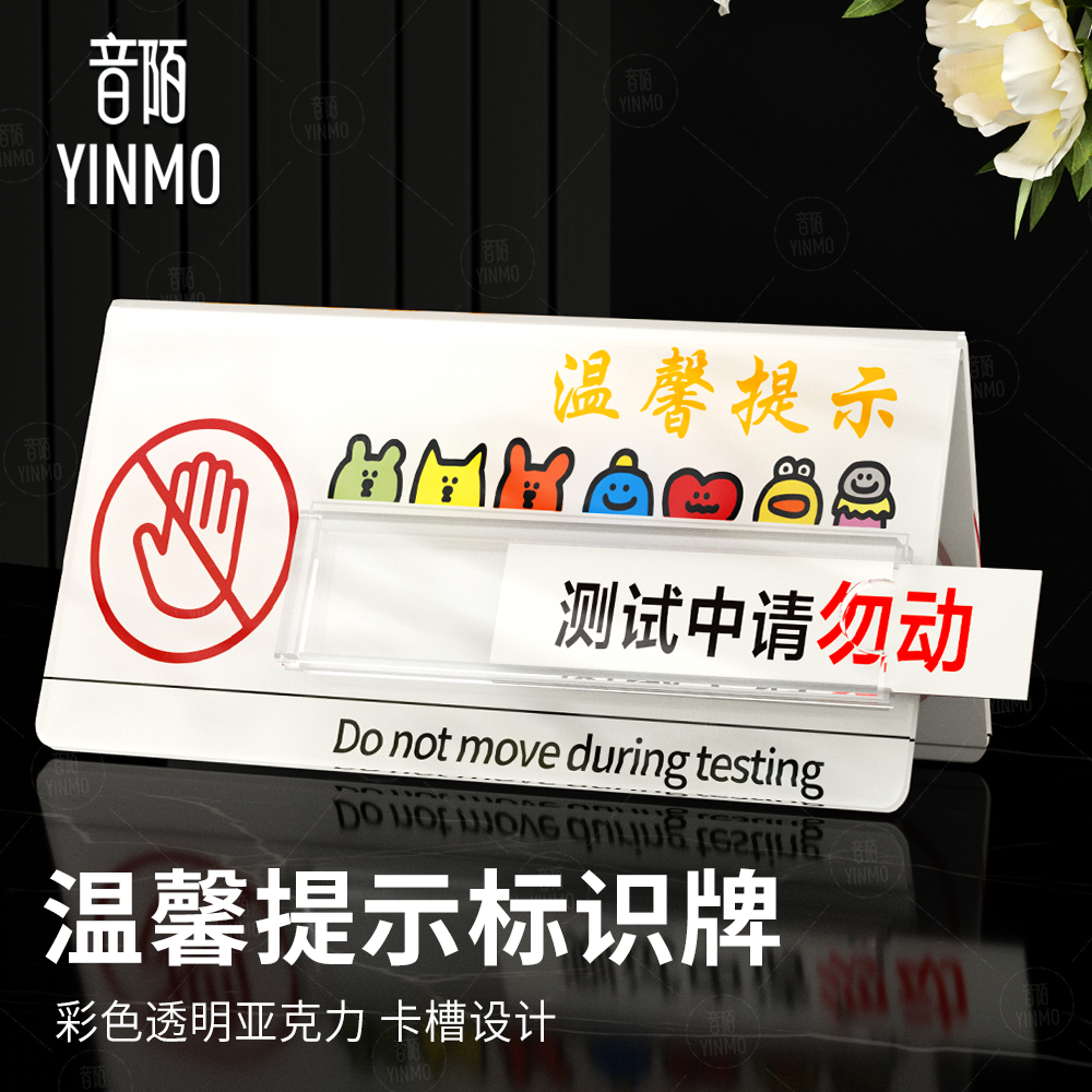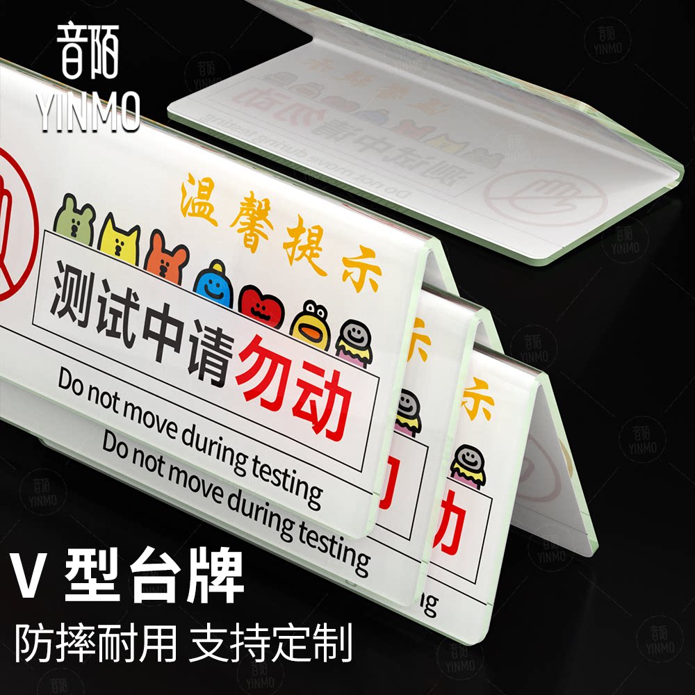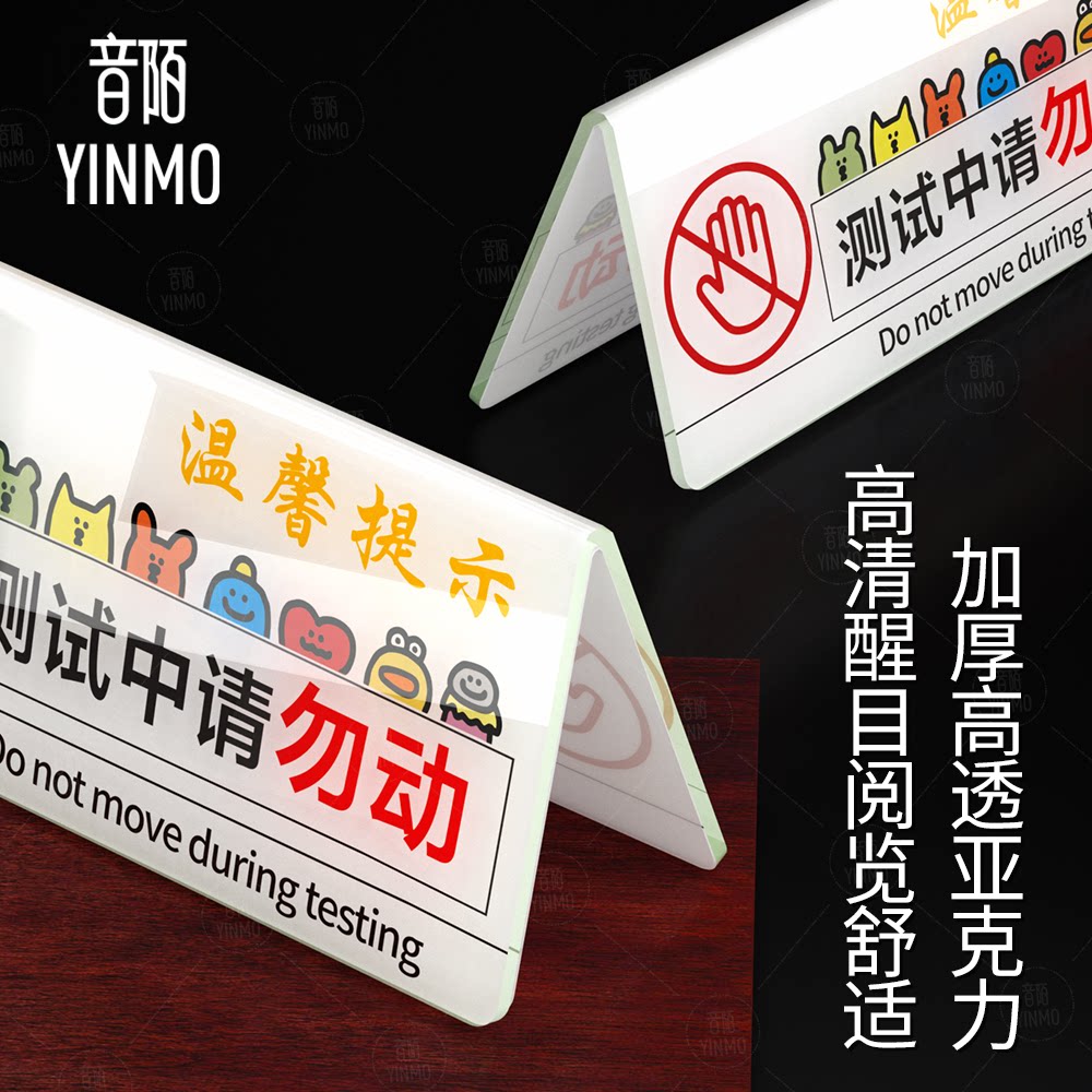 测试中请勿动桌牌标识牌插卡可更换 禁止触碰设备测试中注意安全警示牌单双面台牌定制