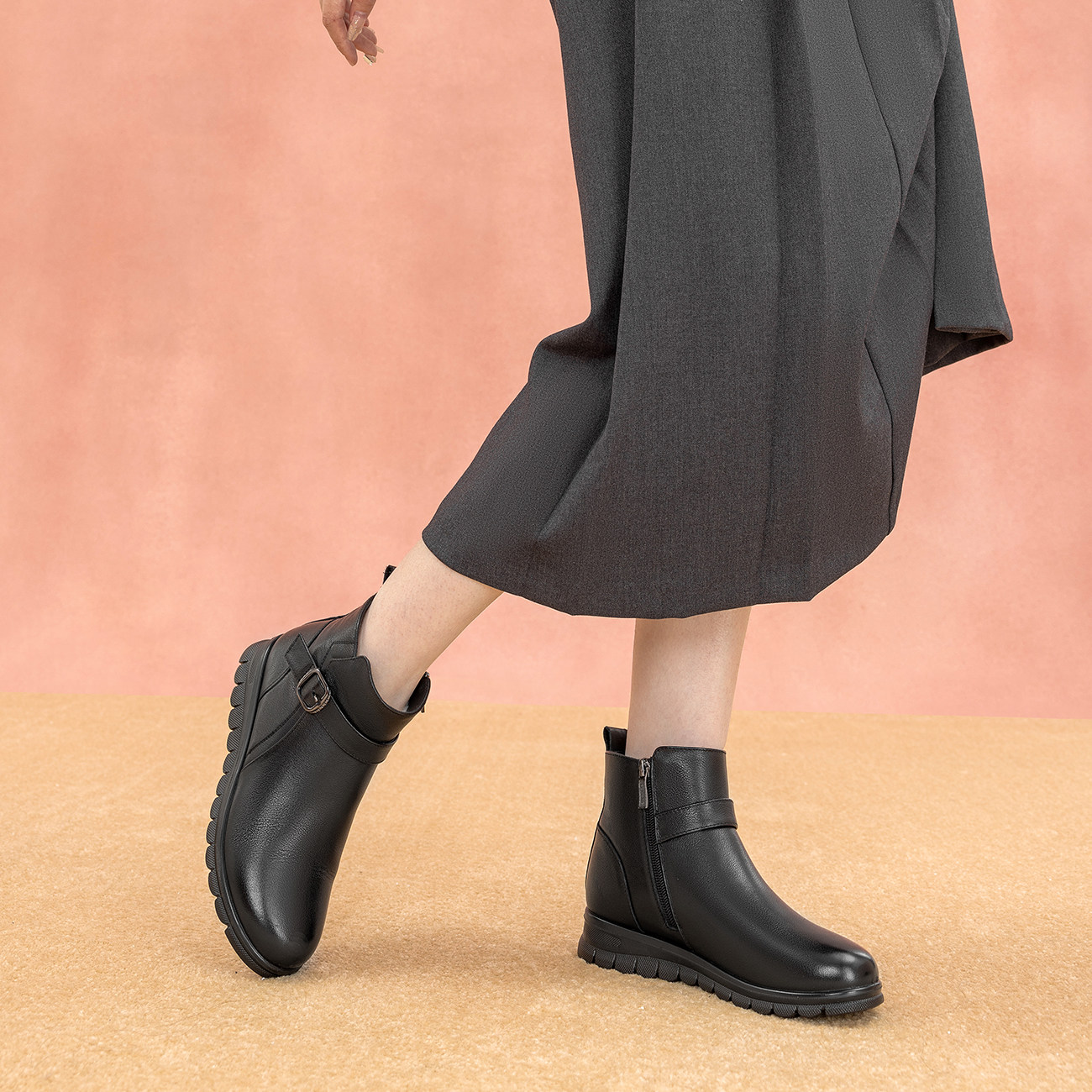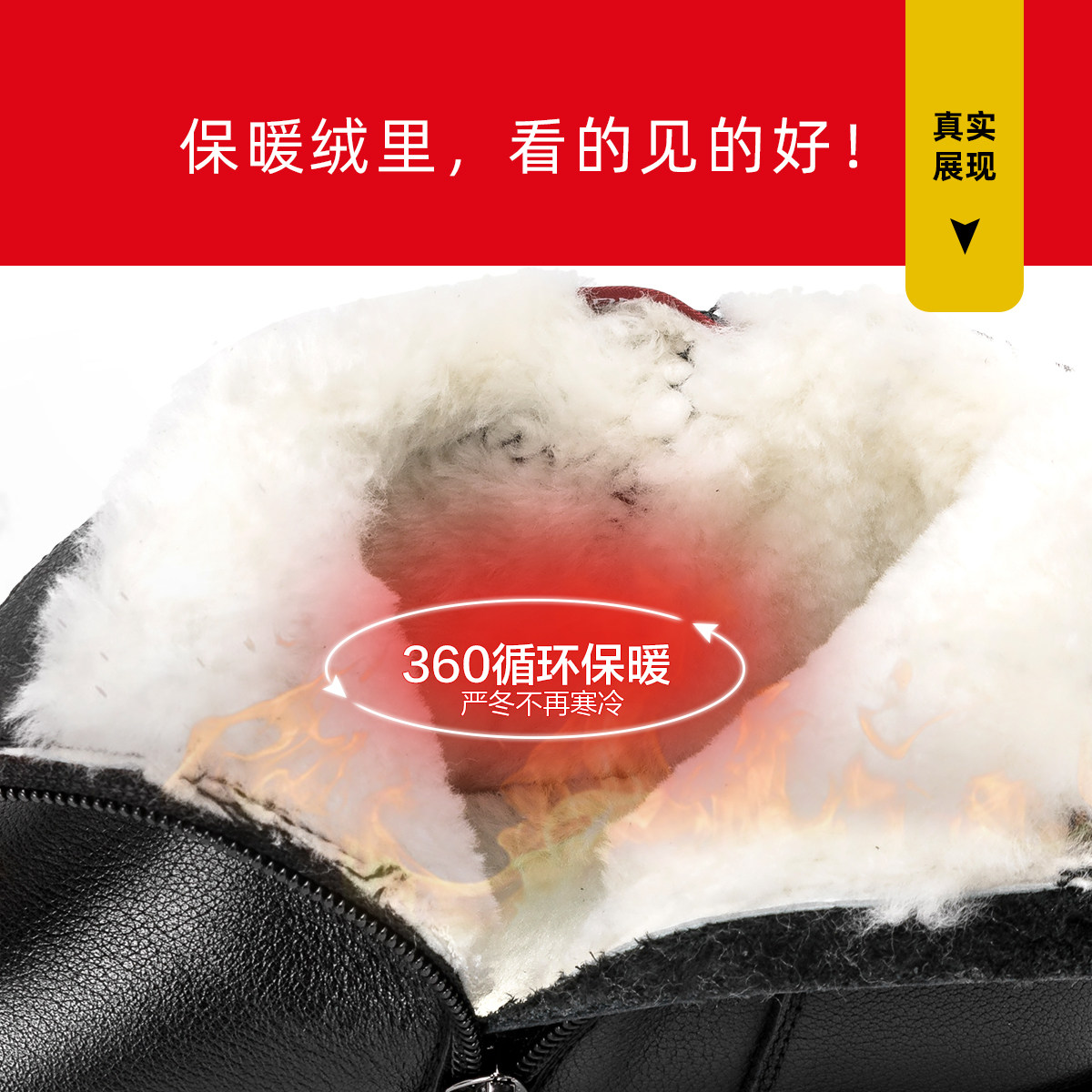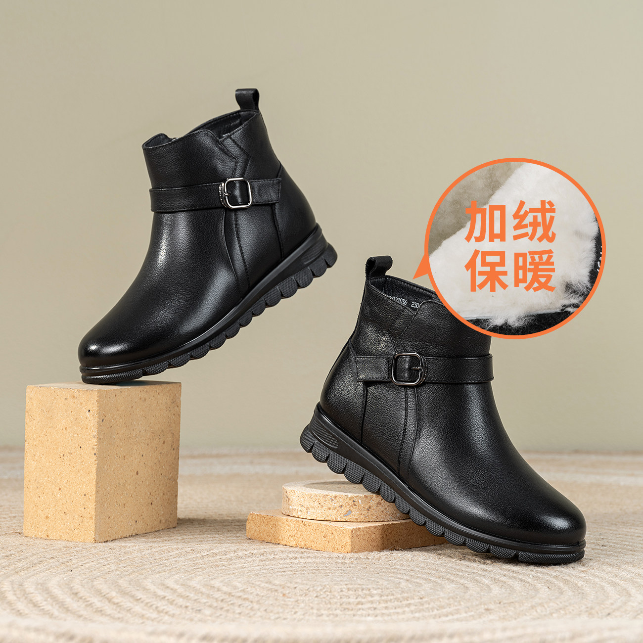 【真皮+羊羔毛】奥康女鞋 冬季加绒套脚妈妈鞋保暖防滑女棉鞋