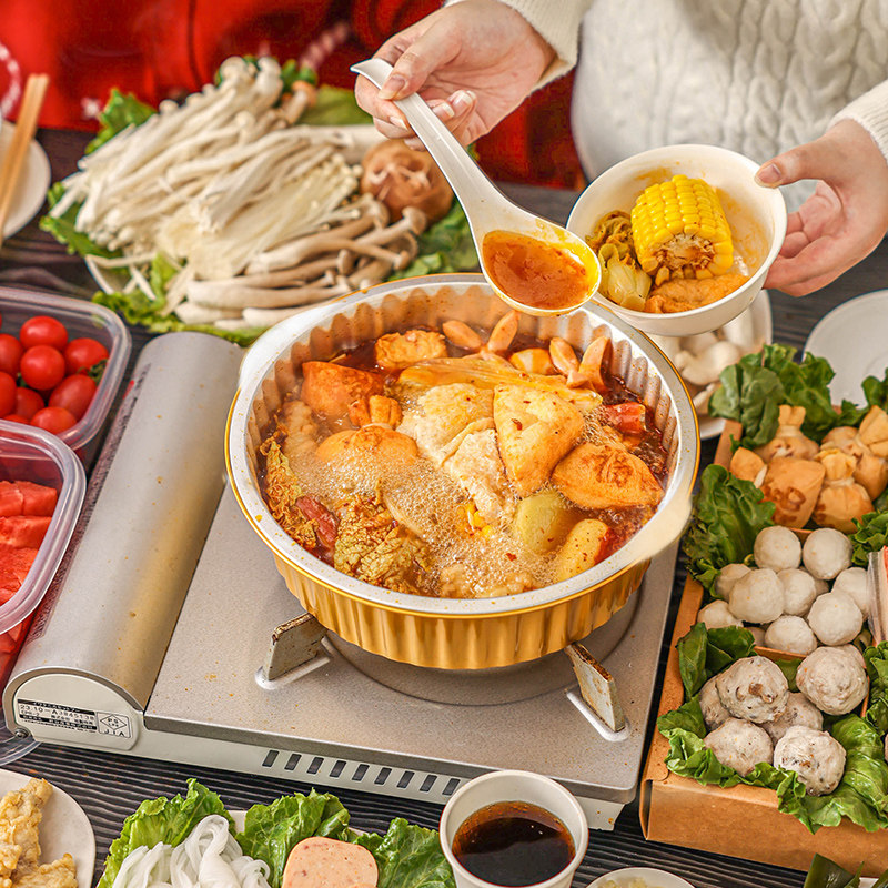 2025新款一次性火锅锅具便携式一人一锅专用户外铝箔单多人卡式炉