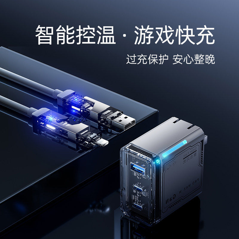 多口氮化镓呼吸灯手机充电器充电头快充套装充头适用华为充电器试用苹果17机甲风透明充电器官方原套装