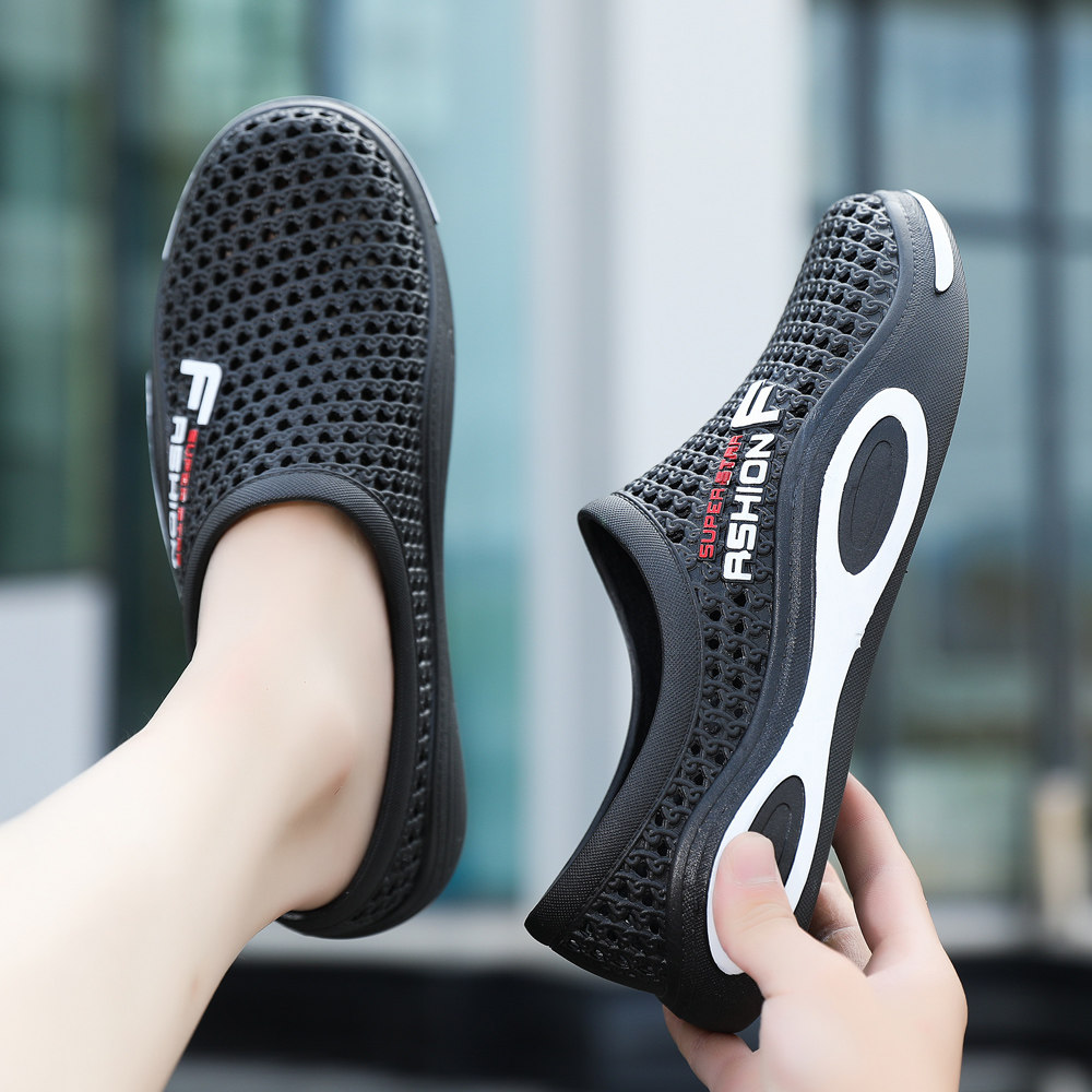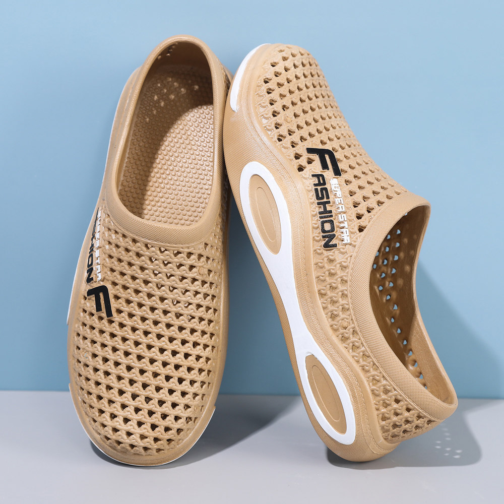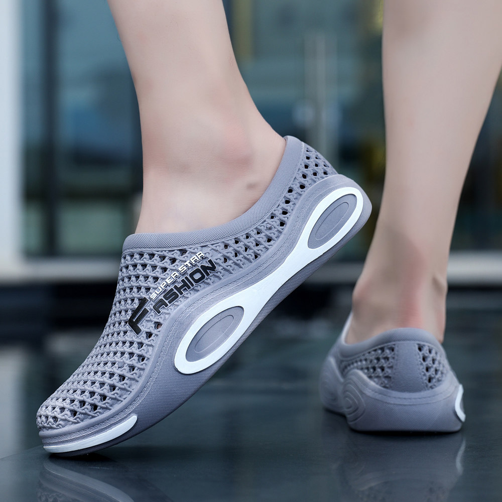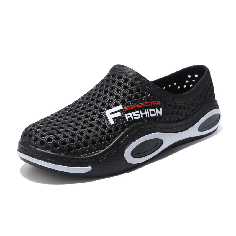 防滑包头洞洞鞋软底男士夏季学生沙滩鞋防水透气大码休闲懒人凉鞋