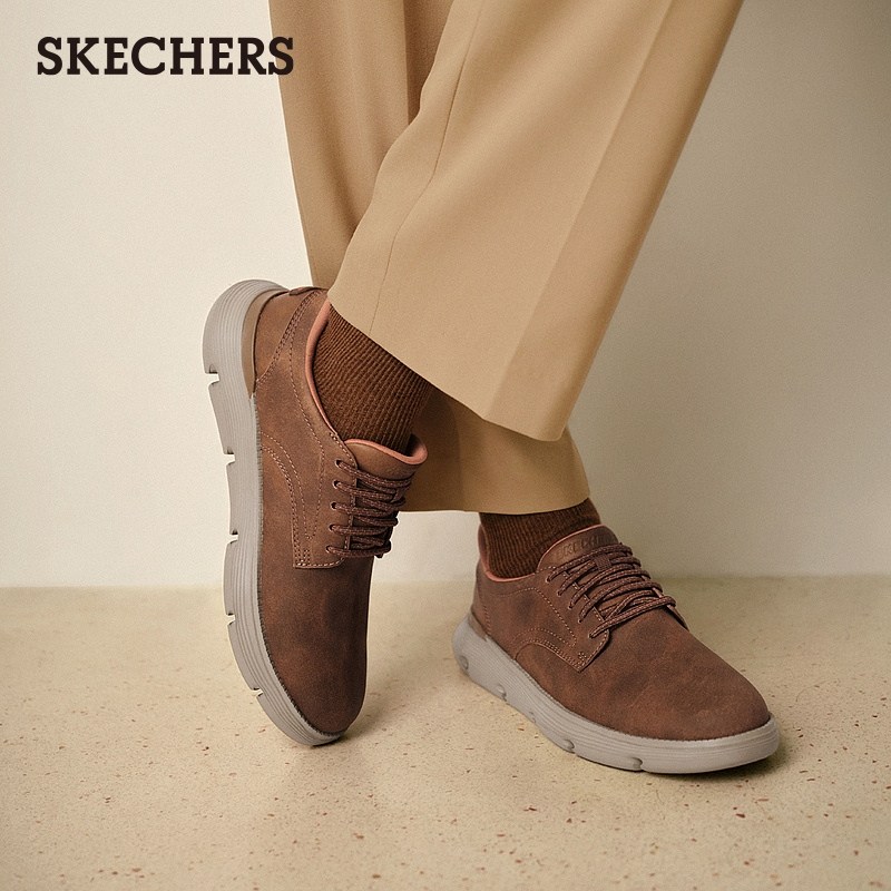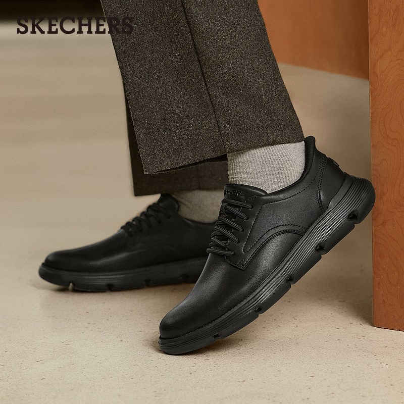 斯凯奇秋冬新款男子舒适休闲皮鞋商务鞋通勤鞋德比鞋软底上班板鞋