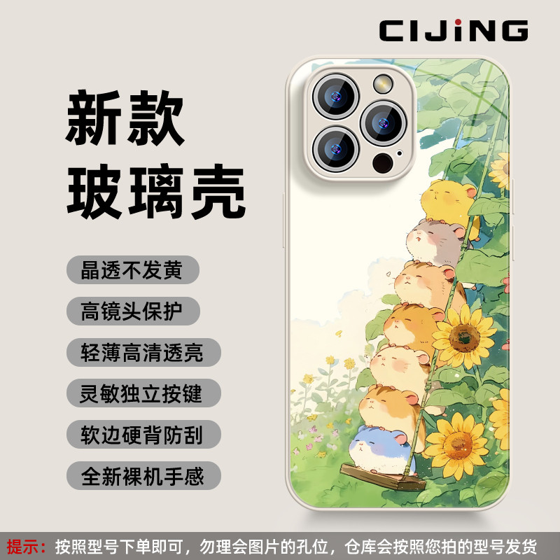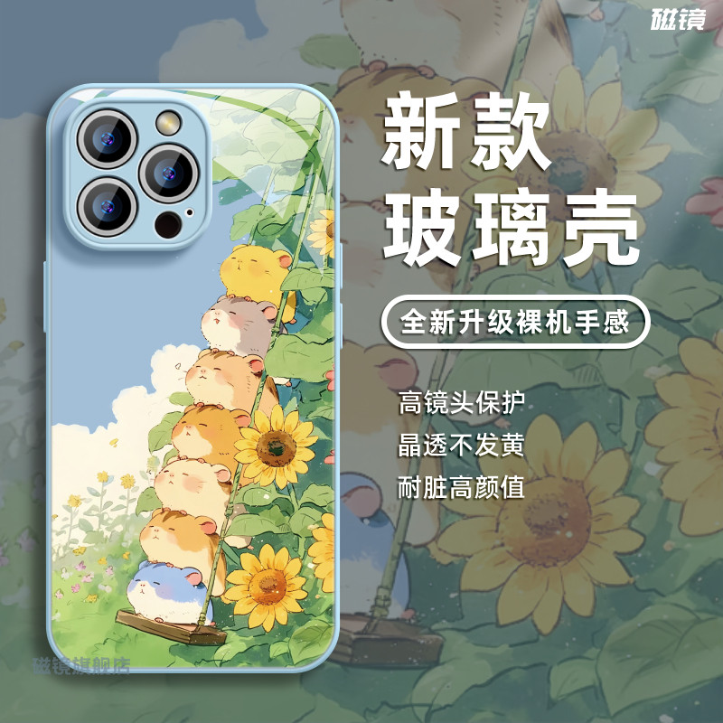 适用苹果17promax玻璃手机壳创意仓鼠iphone一加1314红米k80小米17pro荣耀30090805070保护套30华为p60mate80