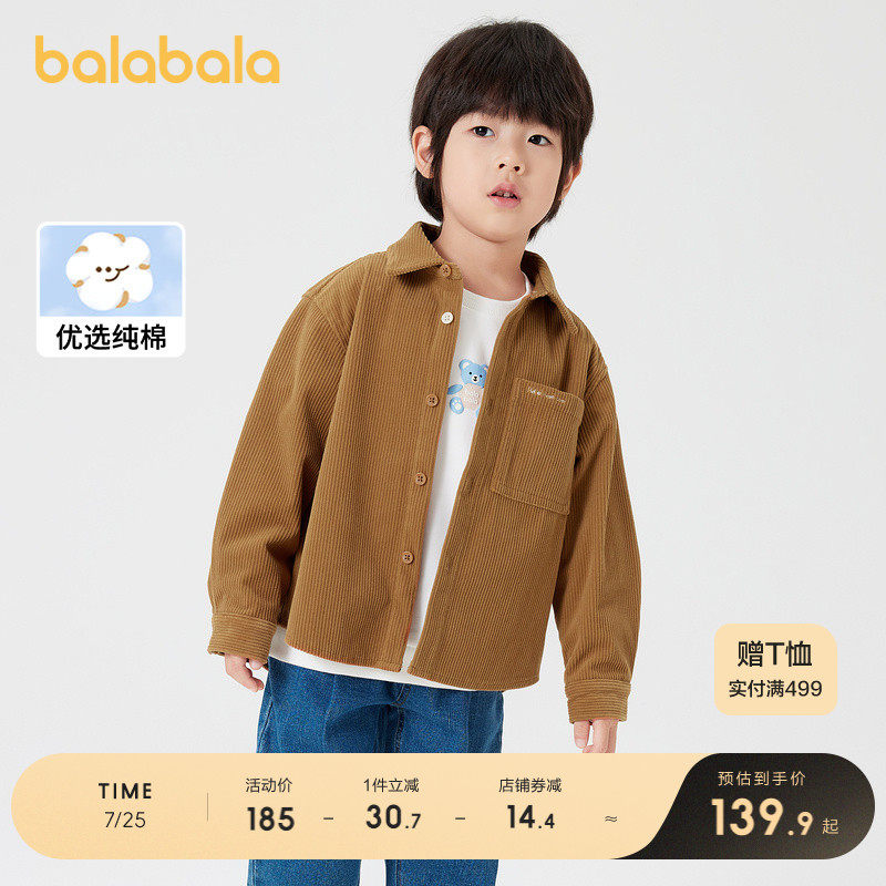 巴拉巴拉童装儿童衬衫男童衬衣长袖翻领秋装灯芯绒亲子装休闲百搭