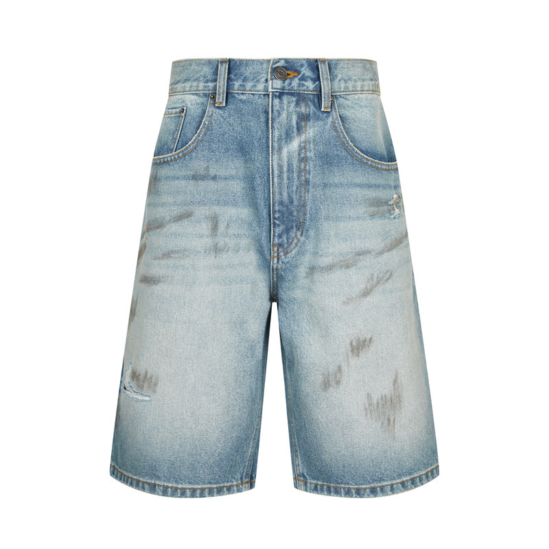 复古磨破脏染牛仔过膝短裤