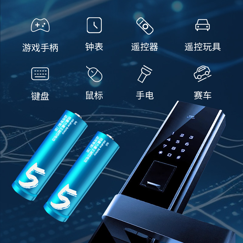双鹿密码锁指纹锁3代升级款5号智能门锁电子锁专用电池LR6碱性家用防盗门智能锁1.5V电池儿童玩具指纹锁专用