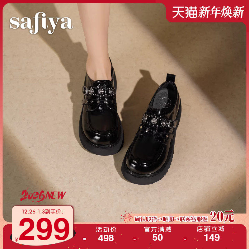 Safiya/索菲娅2026春季新品英伦风铆钉皮带扣魔术贴乐福鞋小皮鞋
