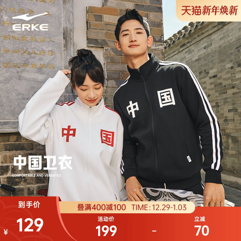 鸿星尔克于适中国外套冬季男女情侣款运动服立领开衫卫衣夹克上衣