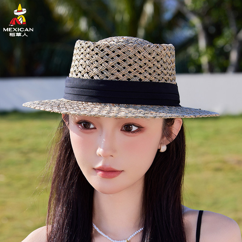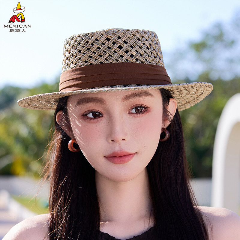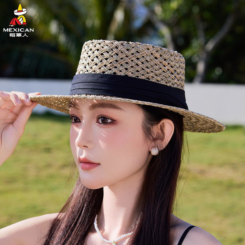 稻草人法式复古百搭宽檐镂空草帽女夏季镂空防晒透气遮阳海边度假