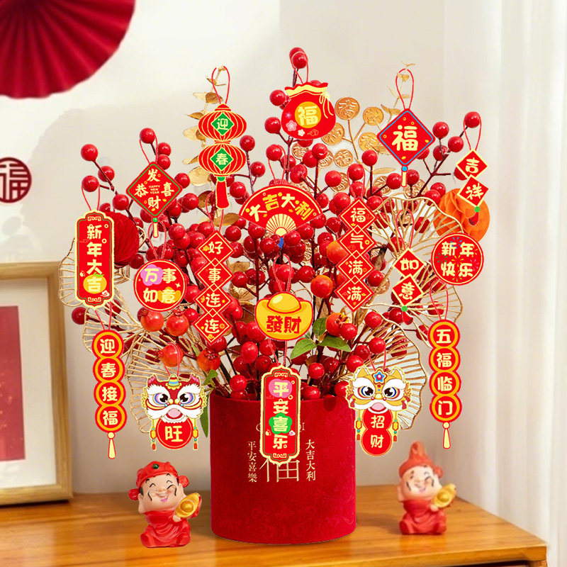 新年装饰春节元旦新款福桶仿真花创意礼物桌面摆件过年年货用品