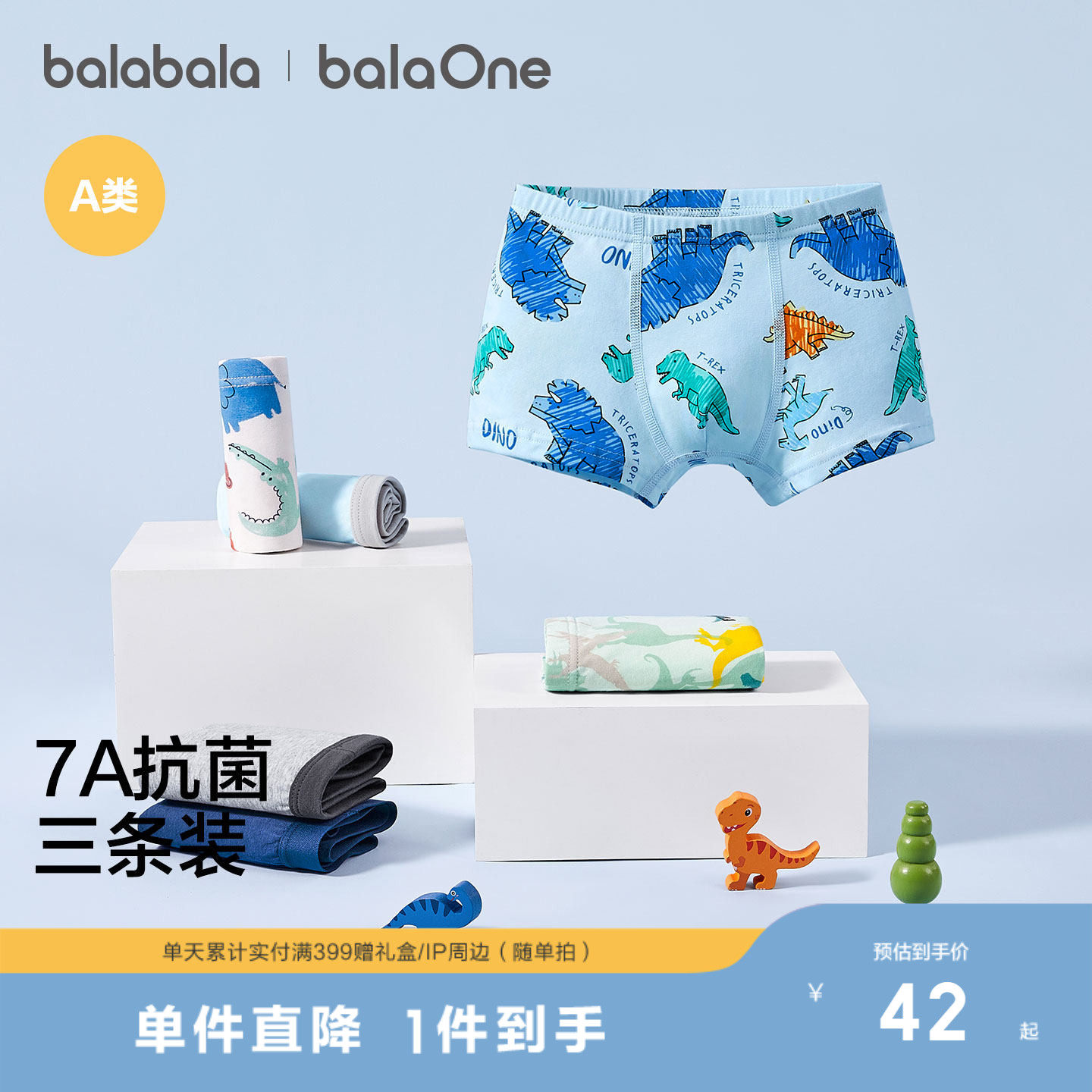 【balaOne】巴拉巴拉儿童内裤棉男童不夹pp抗菌裆四角短裤三条装