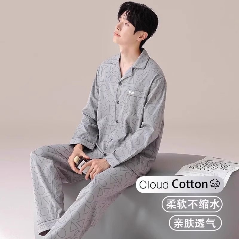 男士睡衣春秋款纯棉长袖套装2025新款男款青年开衫家居服可外穿