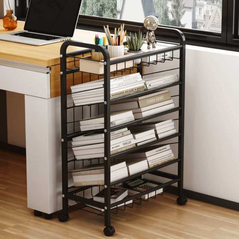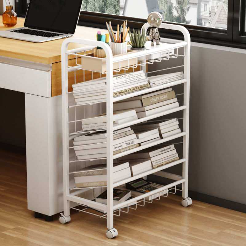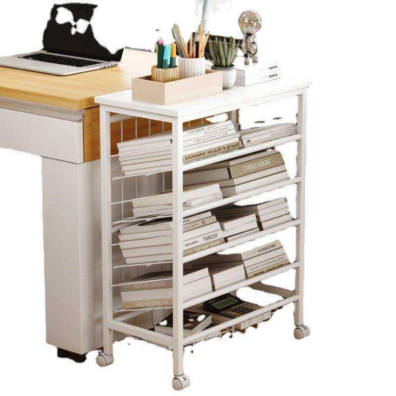 书架置物架落地儿童书桌边收纳架可移动小推车带轮简易书柜阅读架