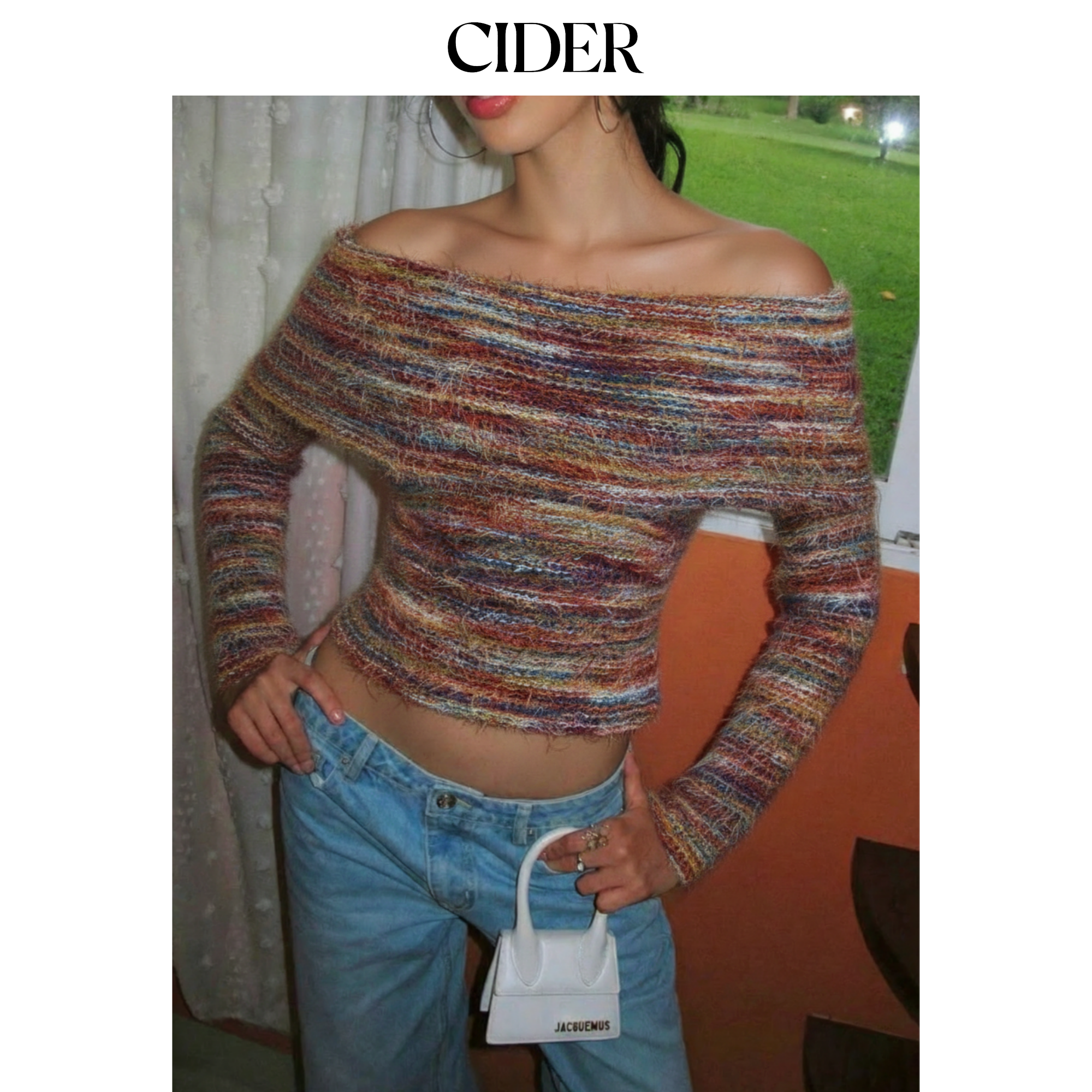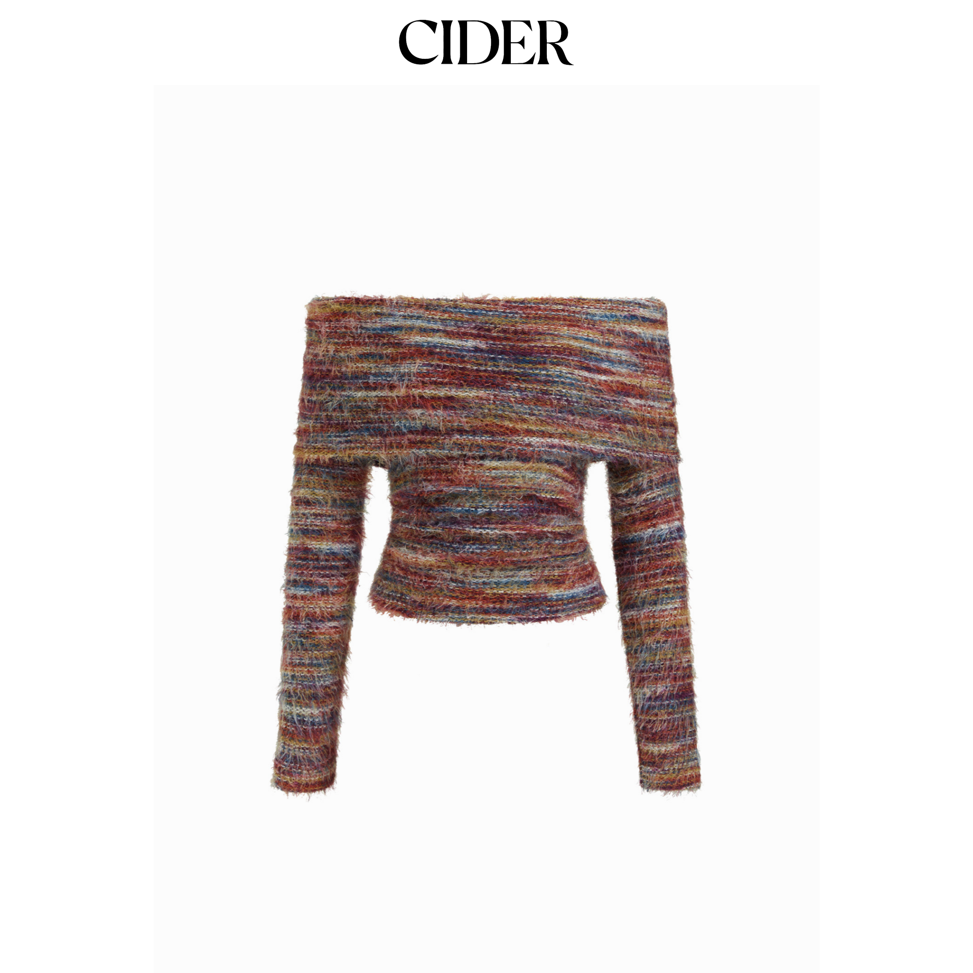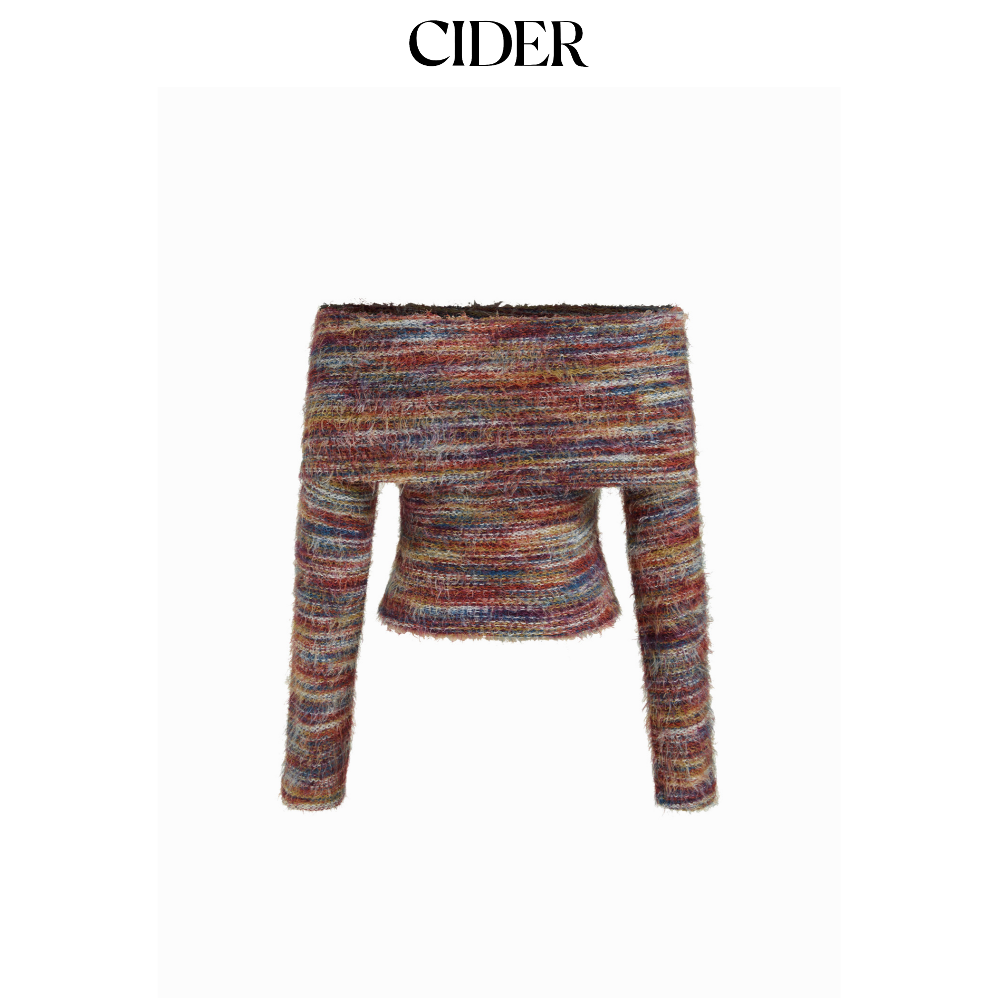 CIDER肌理感条纹抽褶露肩短款上衣115161037