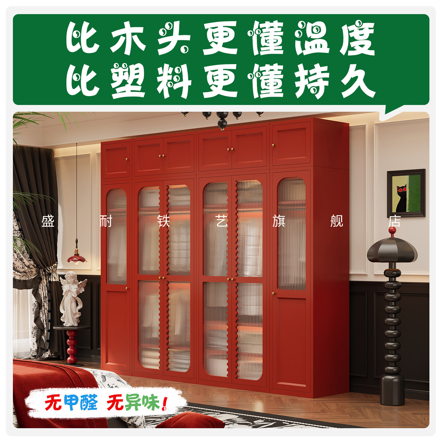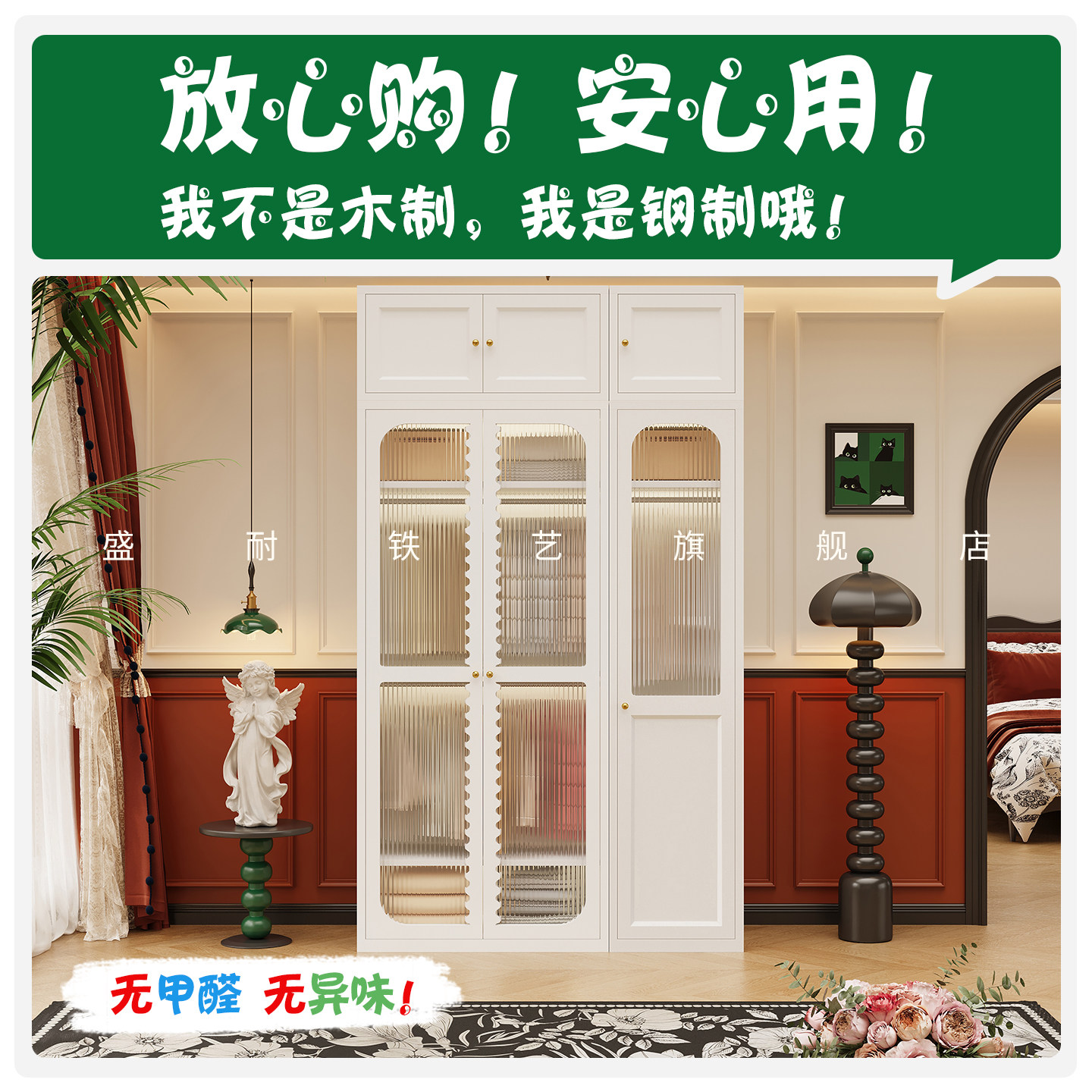 铁皮衣柜家用卧室法式复古风大容量开门挂衣式整理收纳柜组合衣橱