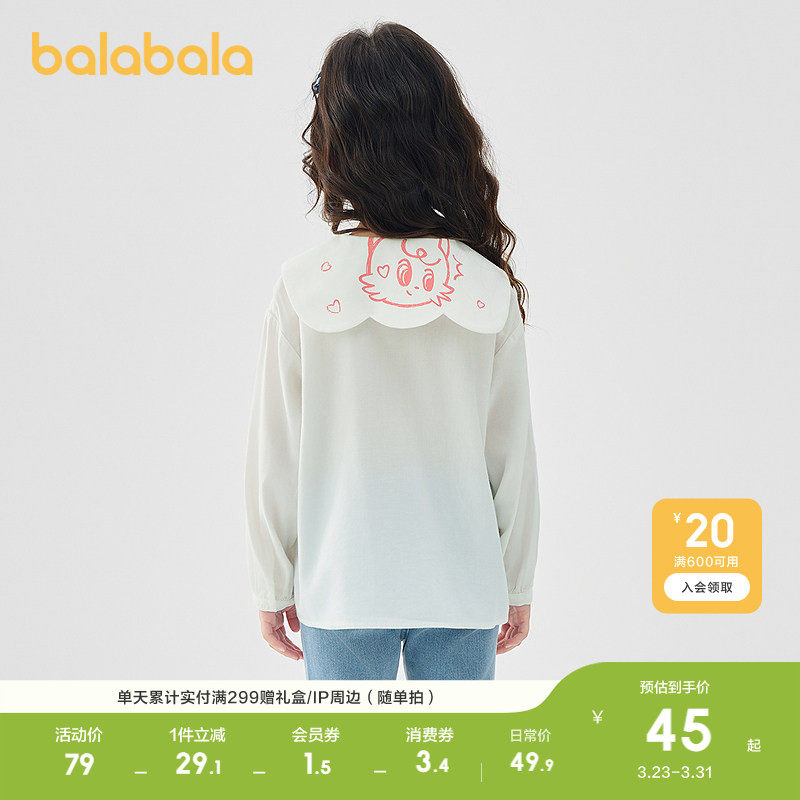 巴拉巴拉女童衬衫儿童装2026春装休闲宝宝小童长袖上衣大翻领衬衣