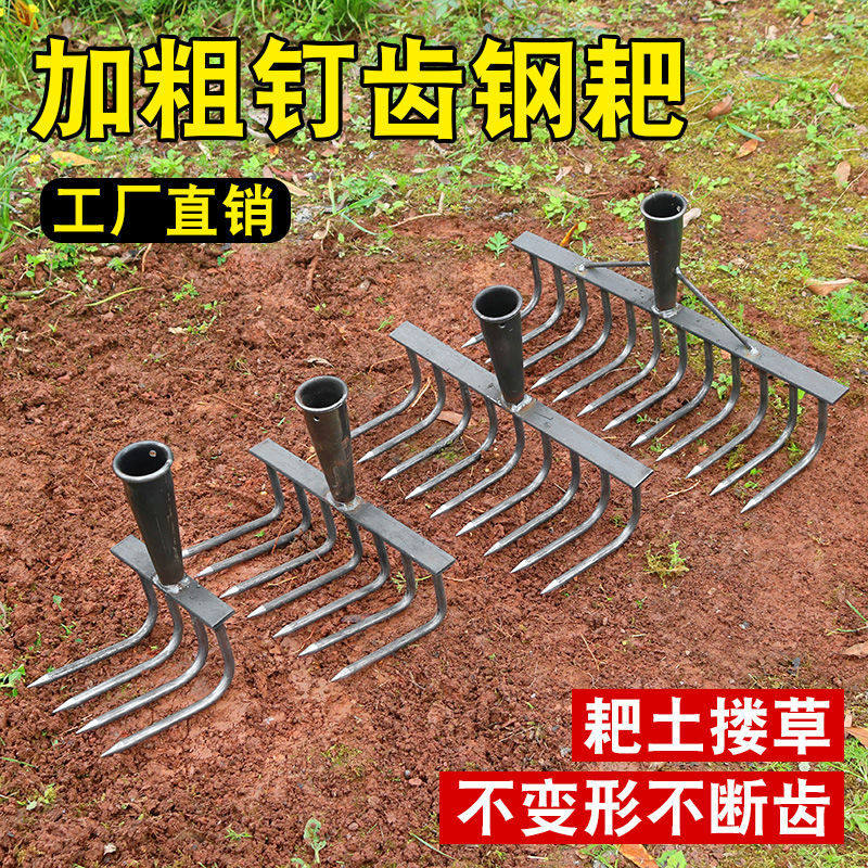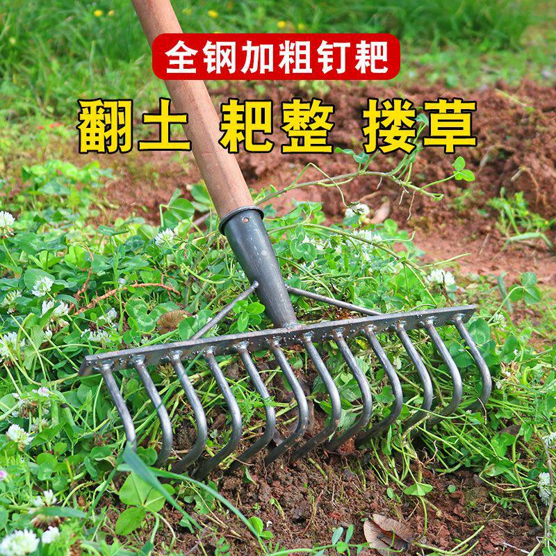 松土神器农用铁耙子九齿钉耙翻地平地搂草工具多功能刨地扒草农具