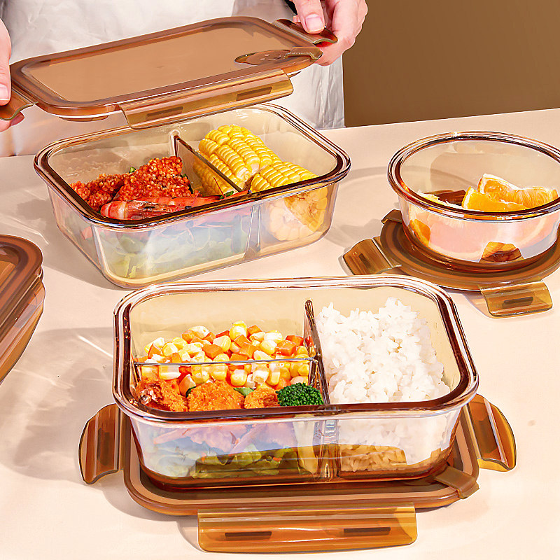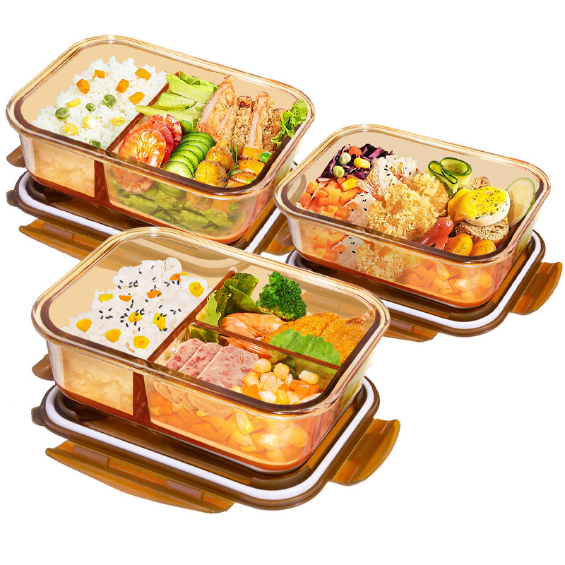琥珀玻璃饭盒微波炉加热专用的碗上班族带饭餐盒保鲜盒分隔便当盒