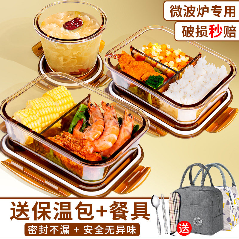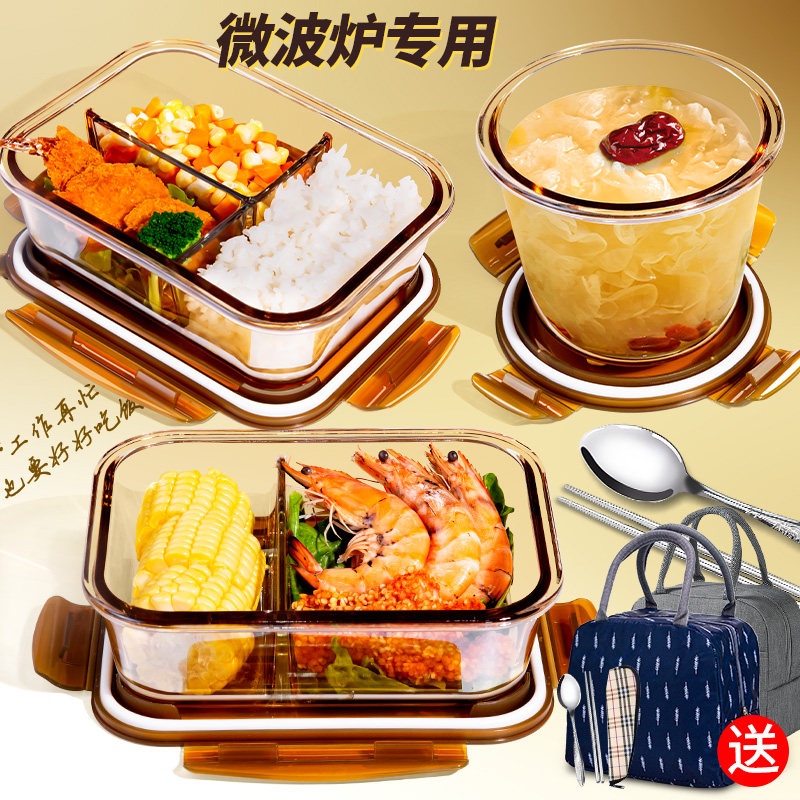 玻璃饭盒微波炉加热专用学生上班族带饭餐盒保鲜盒分隔密封便当碗