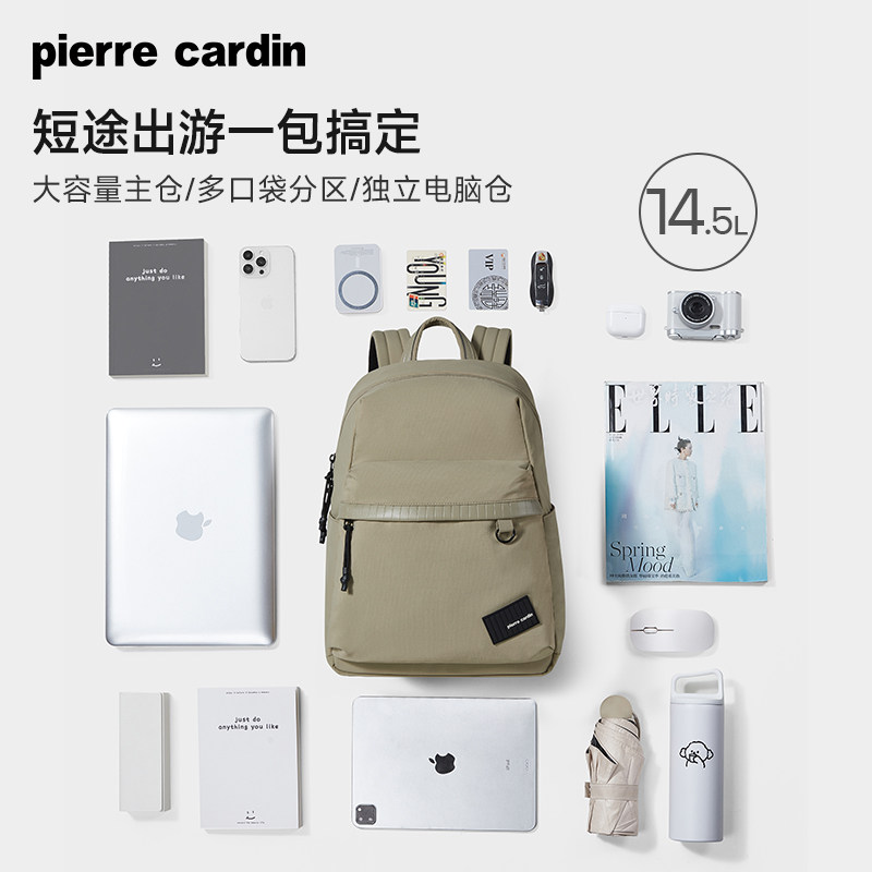 皮尔卡丹男士双肩包轻便大容量电脑书包男女休闲通勤旅行背包新款