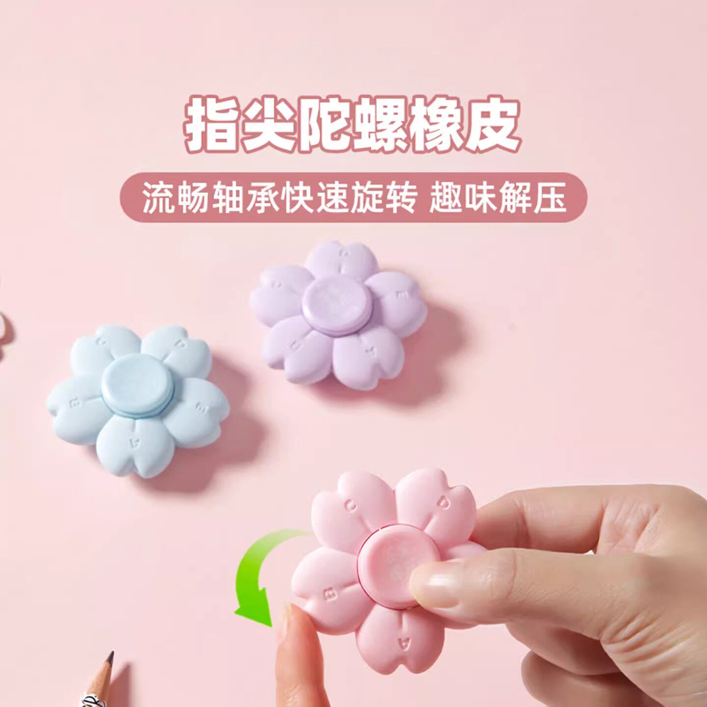晨光光樱号旋转创意橡皮擦指尖陀螺趣味答案橡皮樱花造型AXP963WU