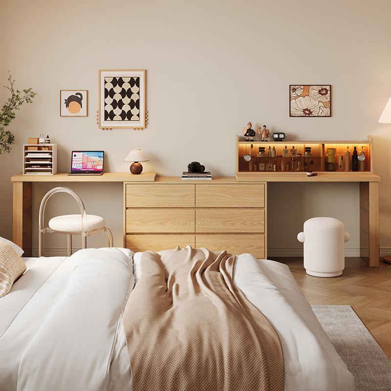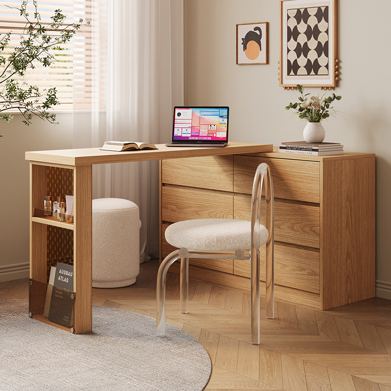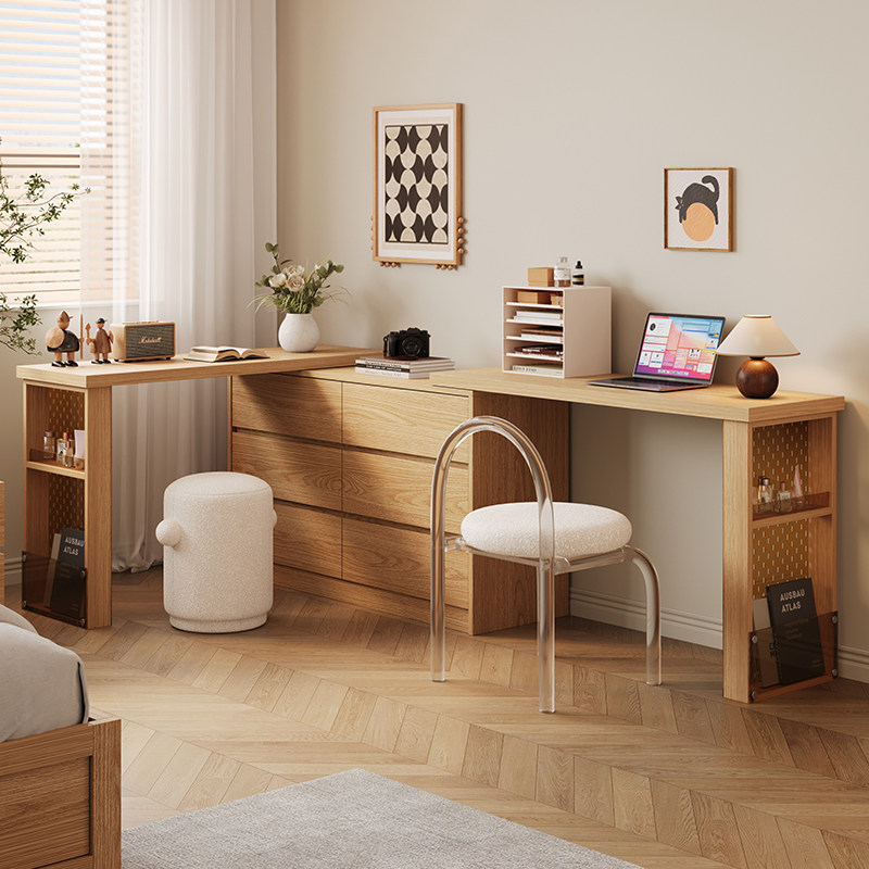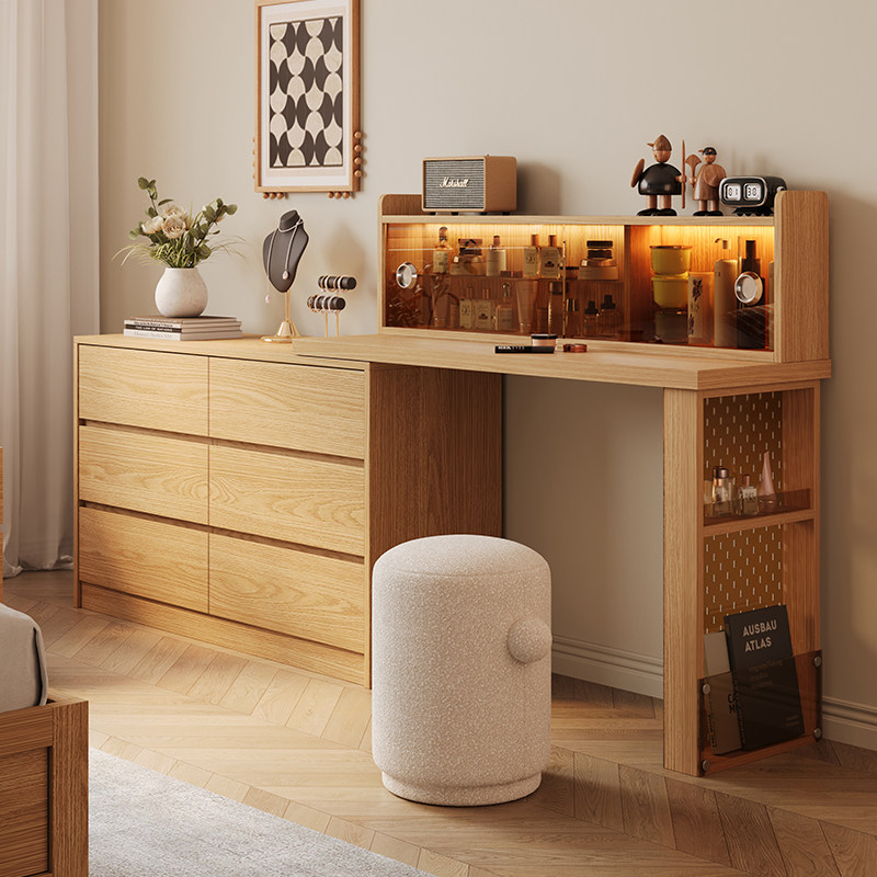 木兜家具实木梳妆台斗柜一体主卧室梳妆台原木风书桌化妆桌床尾柜