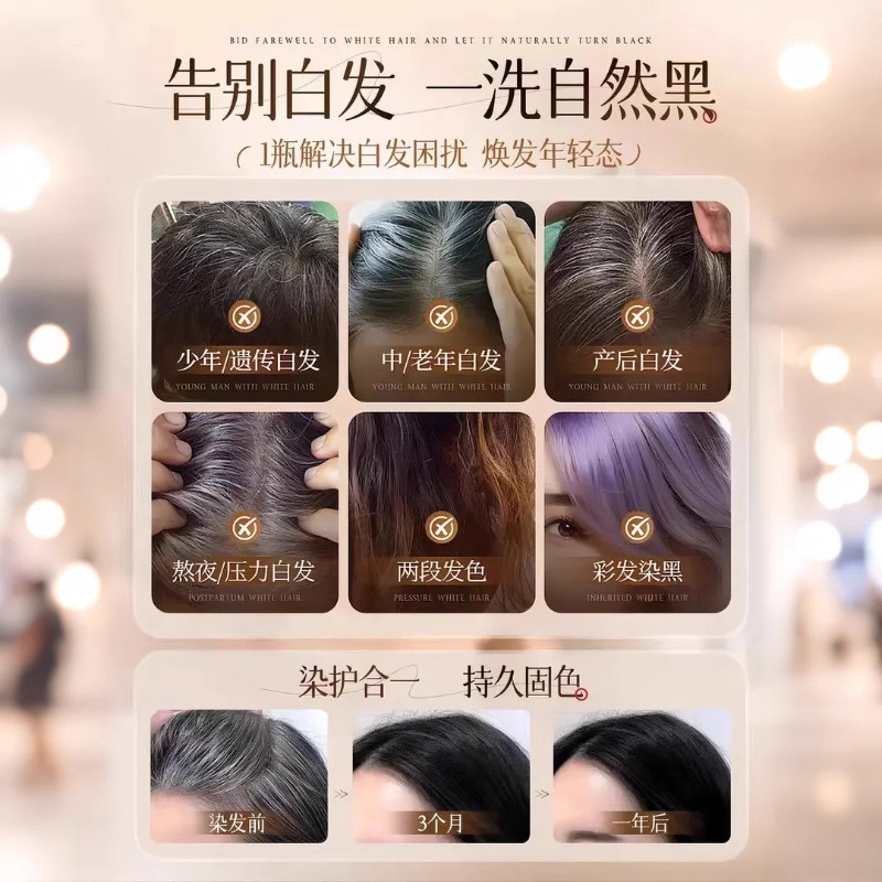 韩金靓正品染发剂黑茶色棕植物泡泡刺激无纯自己在家染发膏盖白女