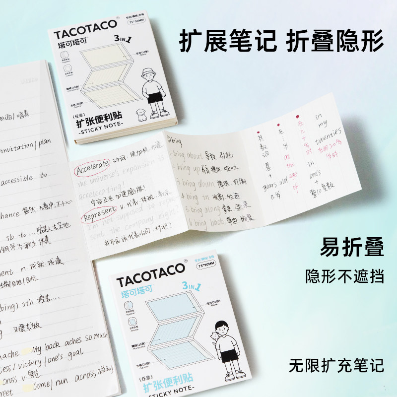 TACOTACO三合一扩张便利贴任意贴考研学生用高中可撕有粘性便签纸