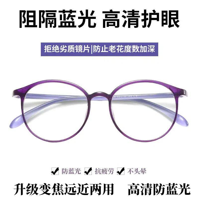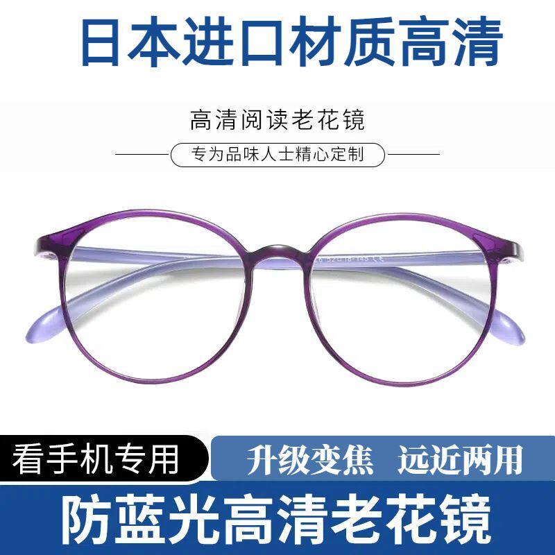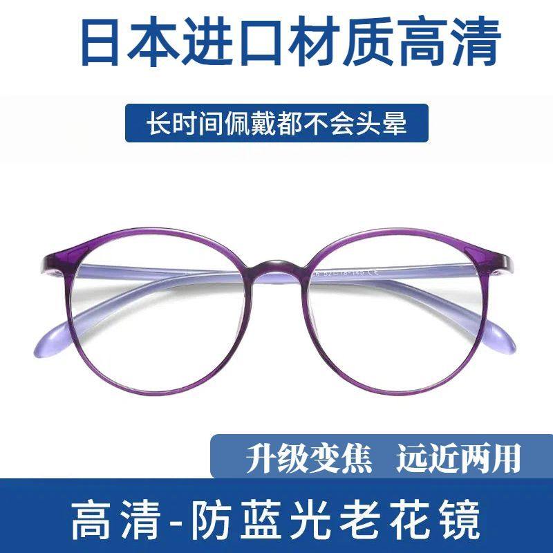 进口防蓝光抗疲劳老花镜高清老人时尚女超轻眼镜变焦镜片远近两用
