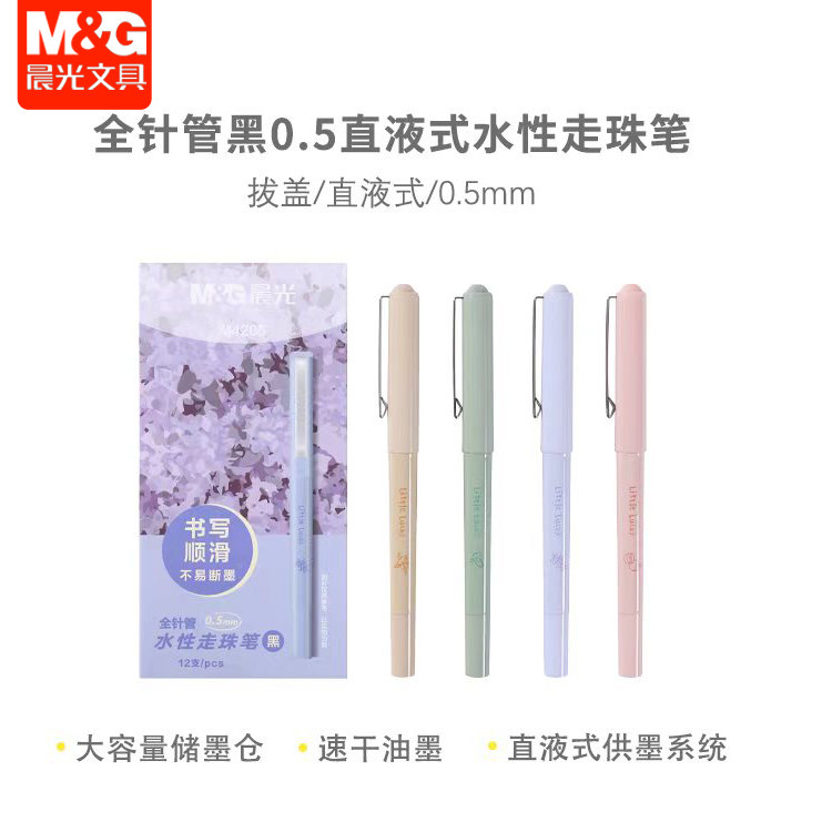 晨光直液式水性走珠笔全针管拔帽0.5mm黑色水笔学生用签字笔M4205